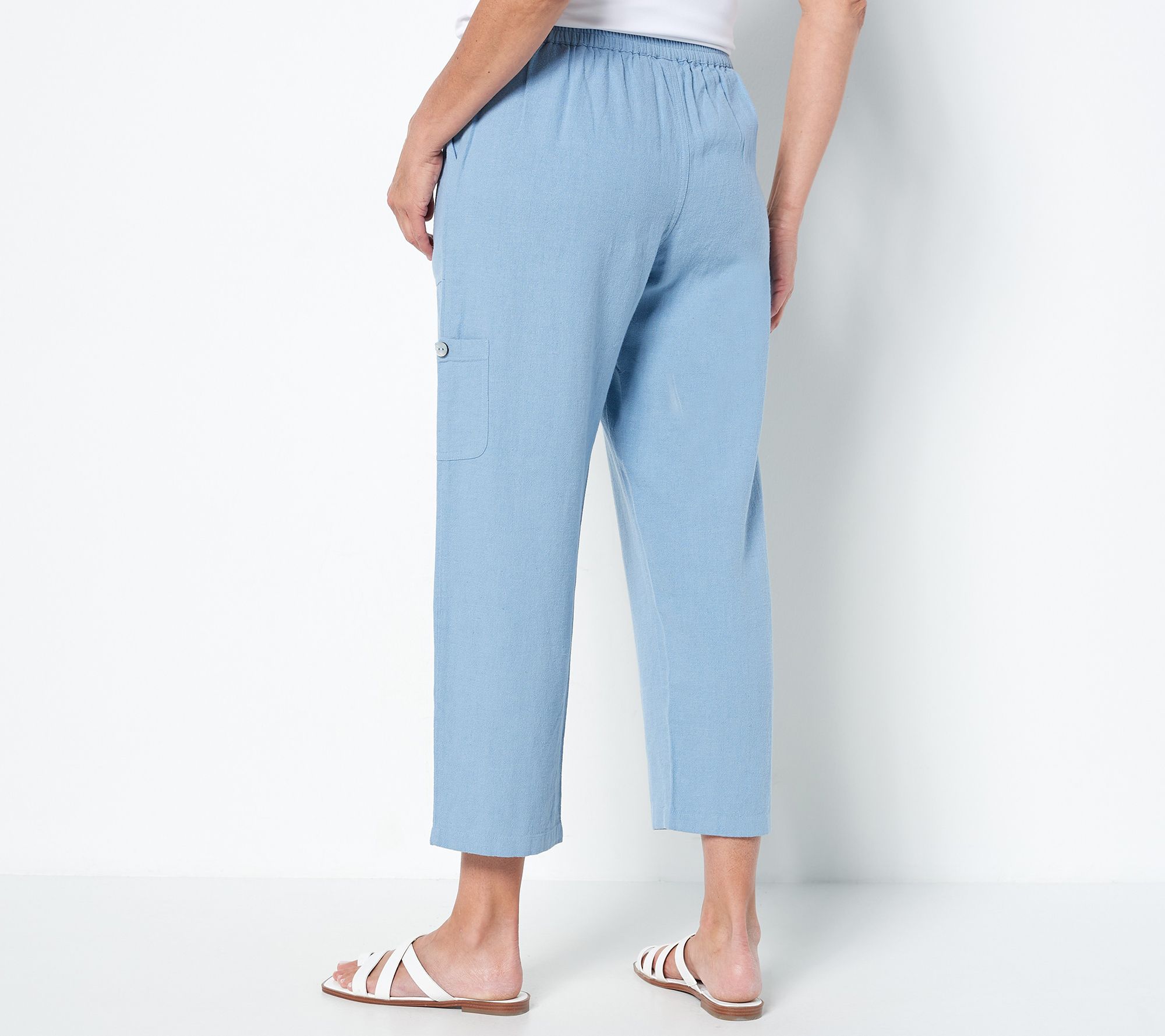 "As Is" Susan Graver Petite Pure Easy Linen Utility Crop Pant