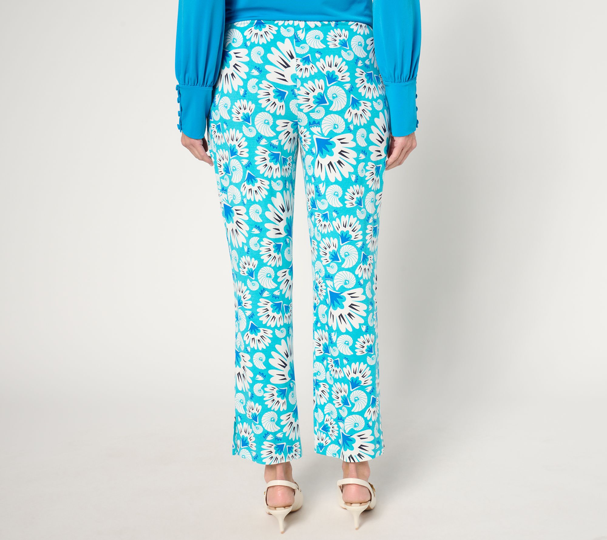 Whether you're lounging by the sparkling sea, strolling the lido deck, or setting out for morning appointments, your outlook is always sunny in these splashy printed ankle pants from Susan's Soleil collection. From Susan Graver.