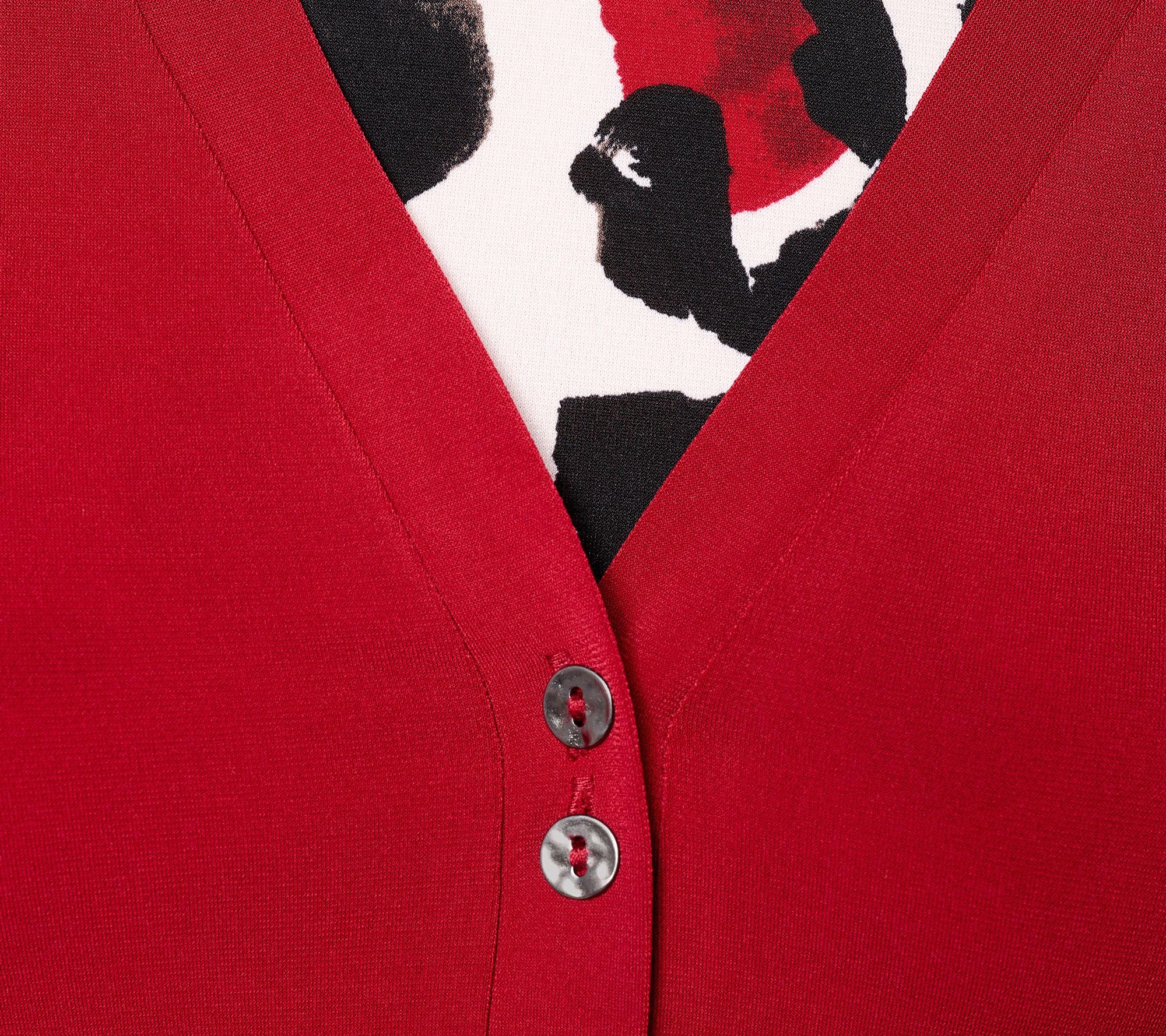 • Cardigan Features: self-banding V-neck, double button placket, 3/4 sleeves, flared straight hem