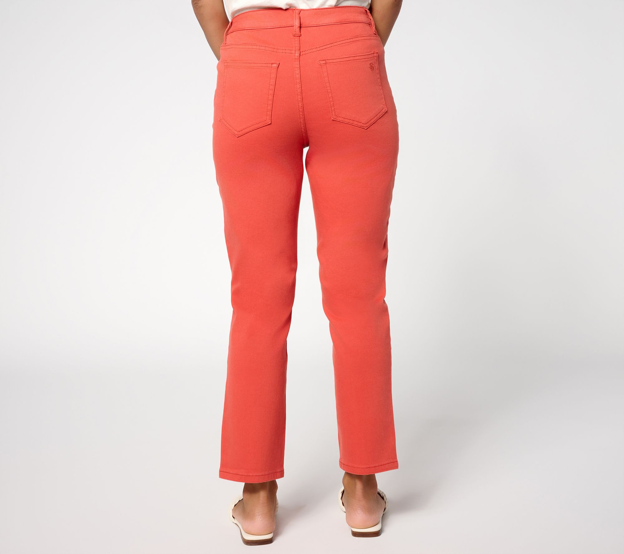 Ready for something a bit different than classic jeans? These stretch denim ankle pants feature a front slit at the hem, giving your everyday outfits a fashion-forward accent (and your favorite footwear a chance to shine!). The straight-leg shape and two-piece contour waistband bring a comfy, flattering fit -- easy to pair with sandals or booties for a polished look from morning errands to evenings out. From Susan Graver.