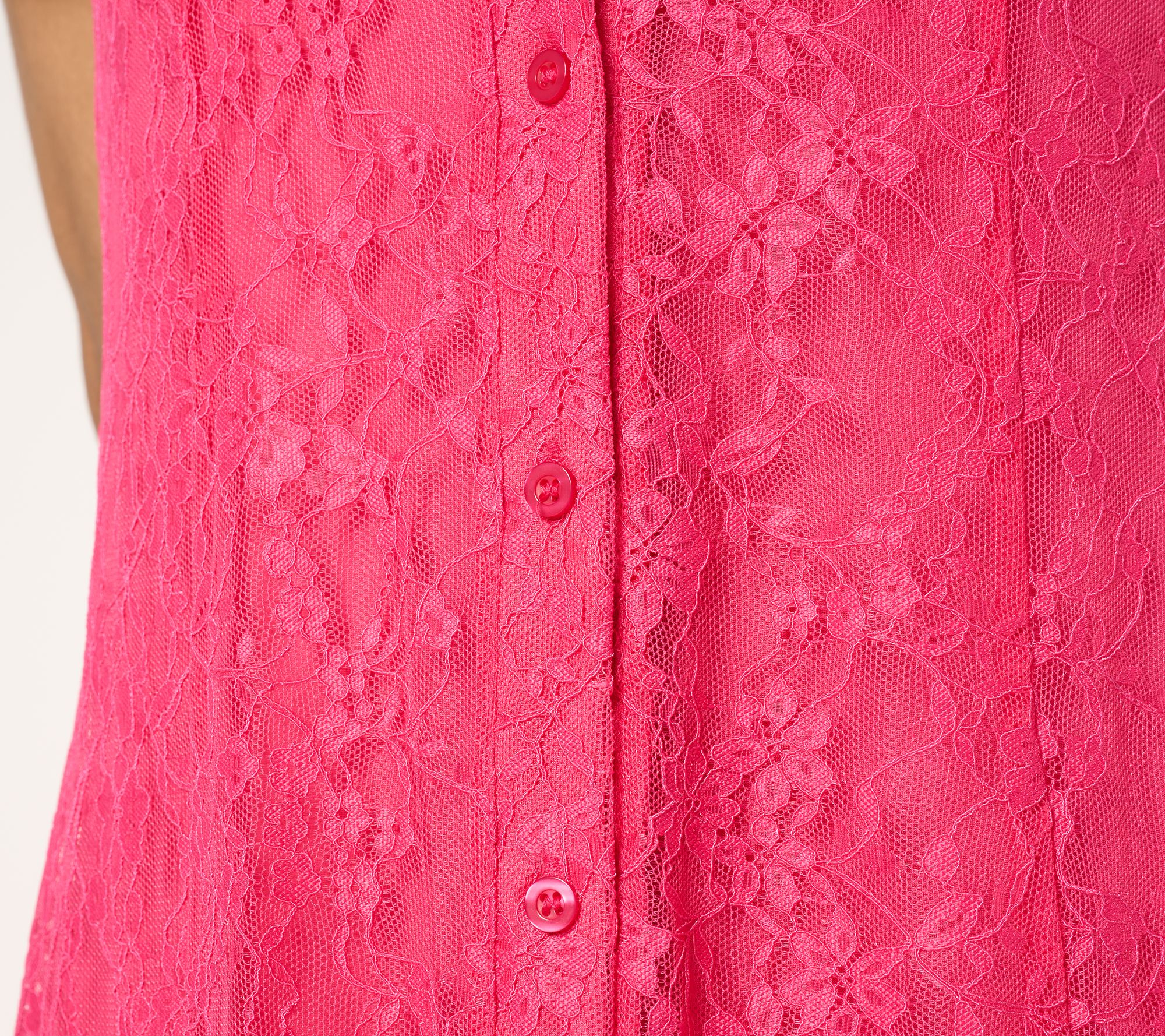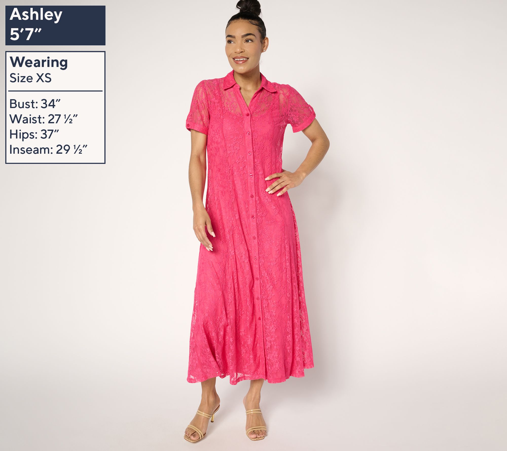 "As Is" Susan Graver Petite Stretch Lace Button Front Midi Dress