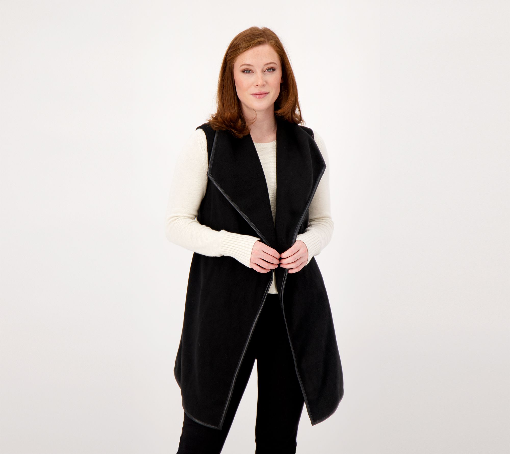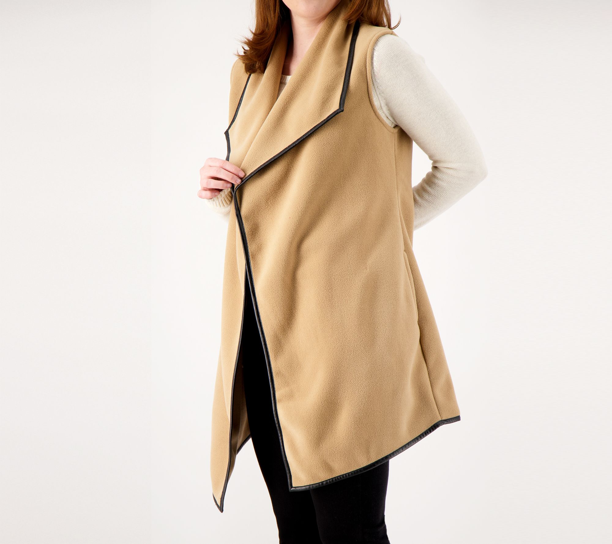 This fleece vest cascades with a dazzling style that adds so much chicness to your daily fashion rotation. Pair it with a turtleneck, jeans, and leather boots and you're ready to go. From Susan Graver.