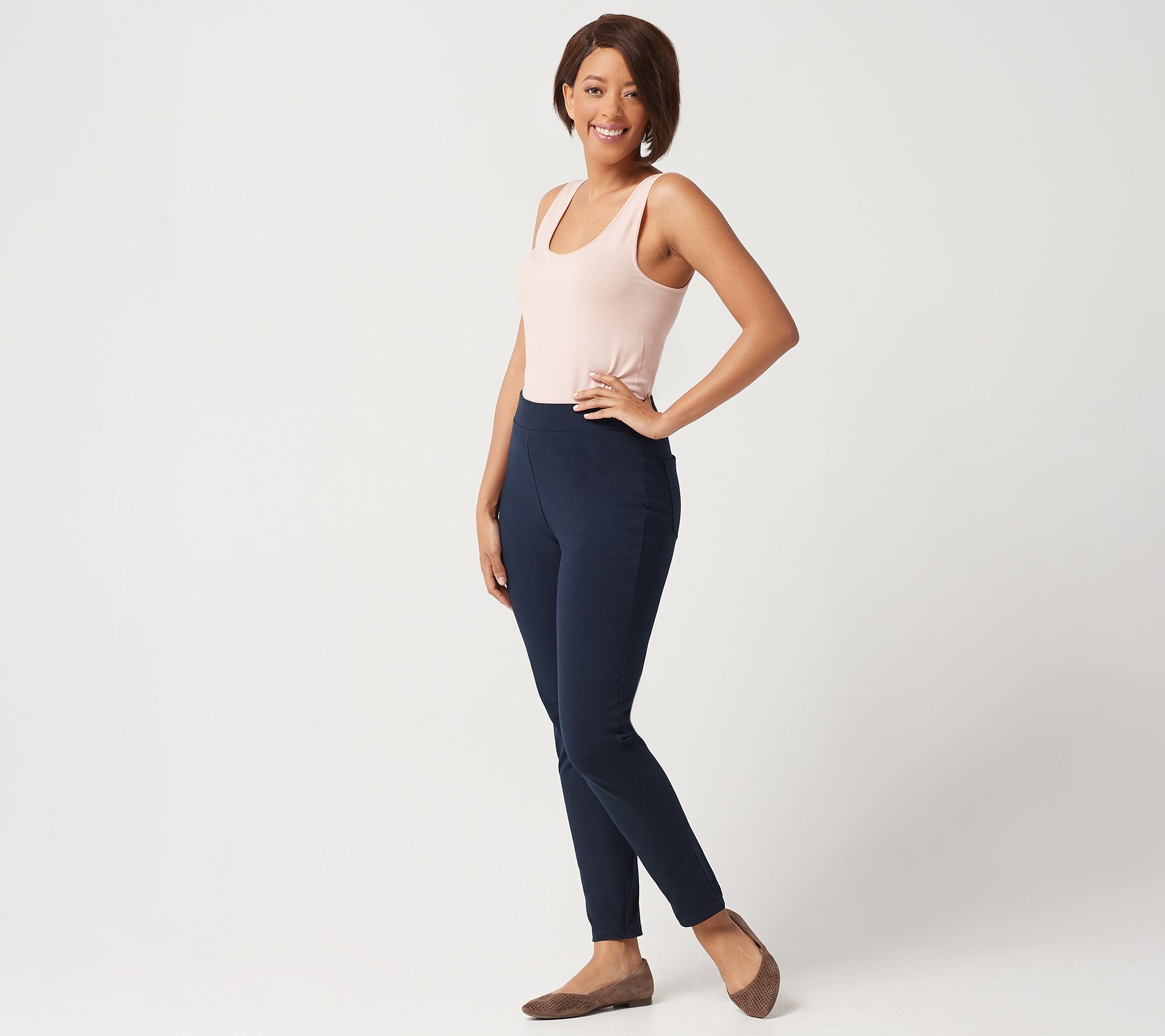It's been a long week. Kick off the heels and crawl into something comfortably stretchy that fits without a fight. These petite Premium Stretch pants. Now go enjoy your weekend. From Susan Graver.