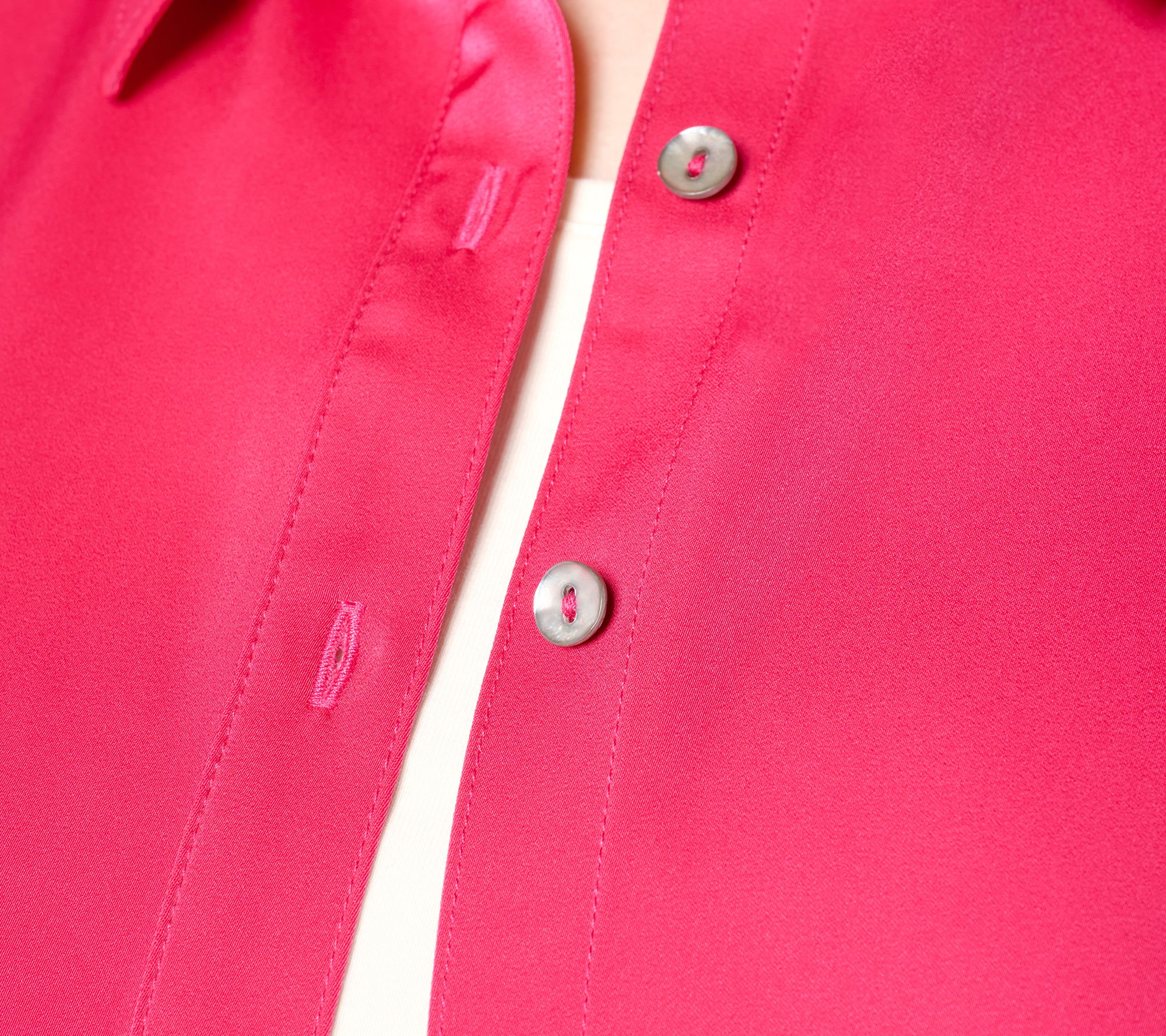"As Is" Susan Graver Petite Woven Stretch Satin Button Front Shacket