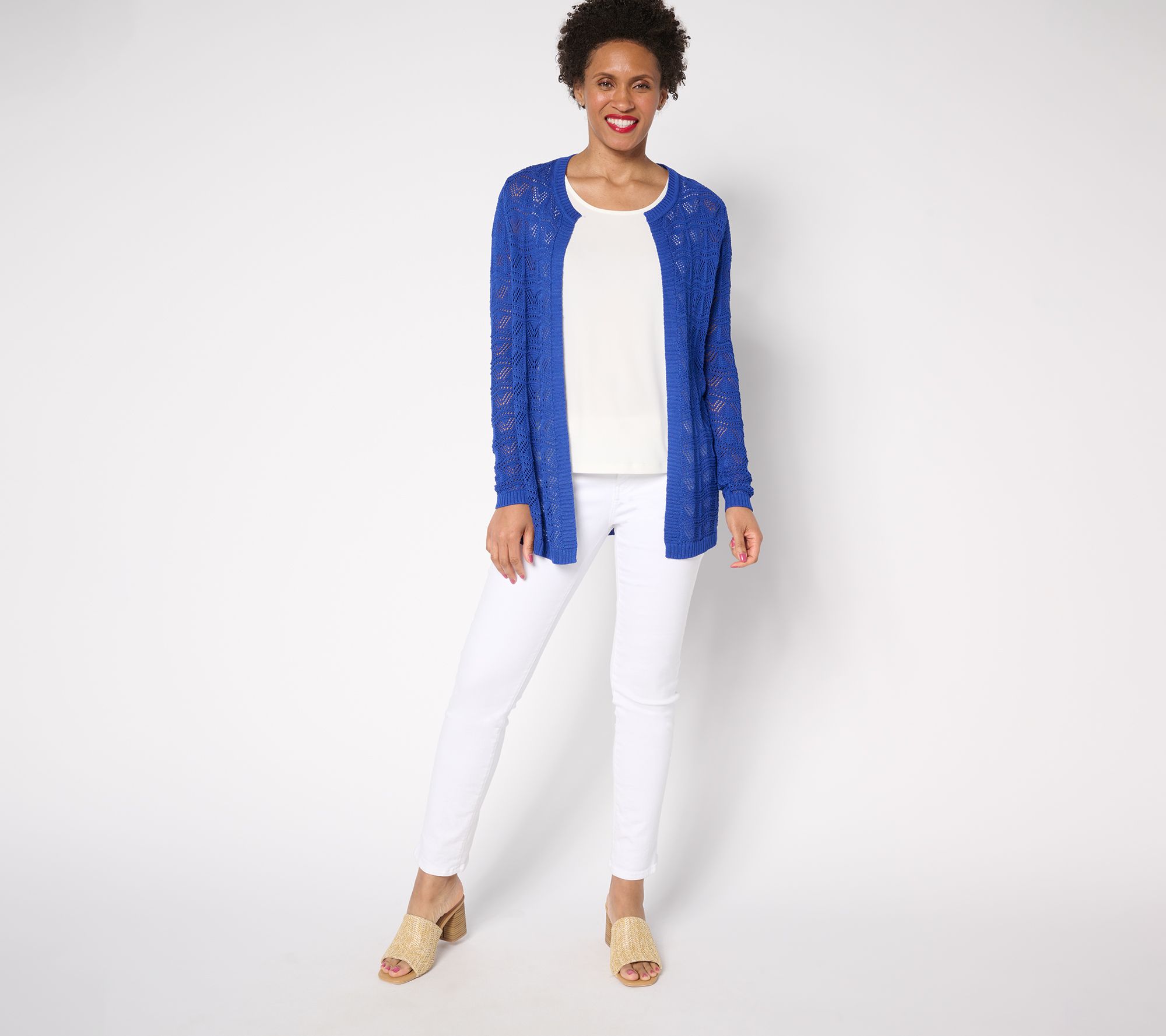 Take on your day with confidence in this pretty pointelle cardigan. Effortless for dressing up or down, it's a versatile piece you'll reach for time and again. From Susan Graver.