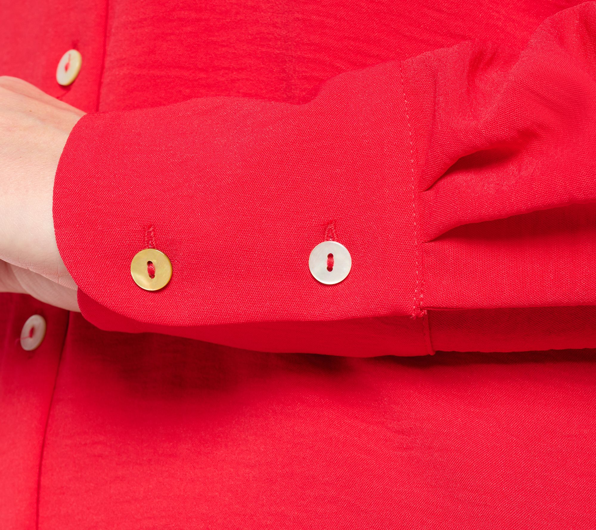 • Features: print or solid color, self collar, collar stand, back yoke, center-back pleat, bust darts, long sleeves with slits, button sleeve cuffs, shirttail hemline