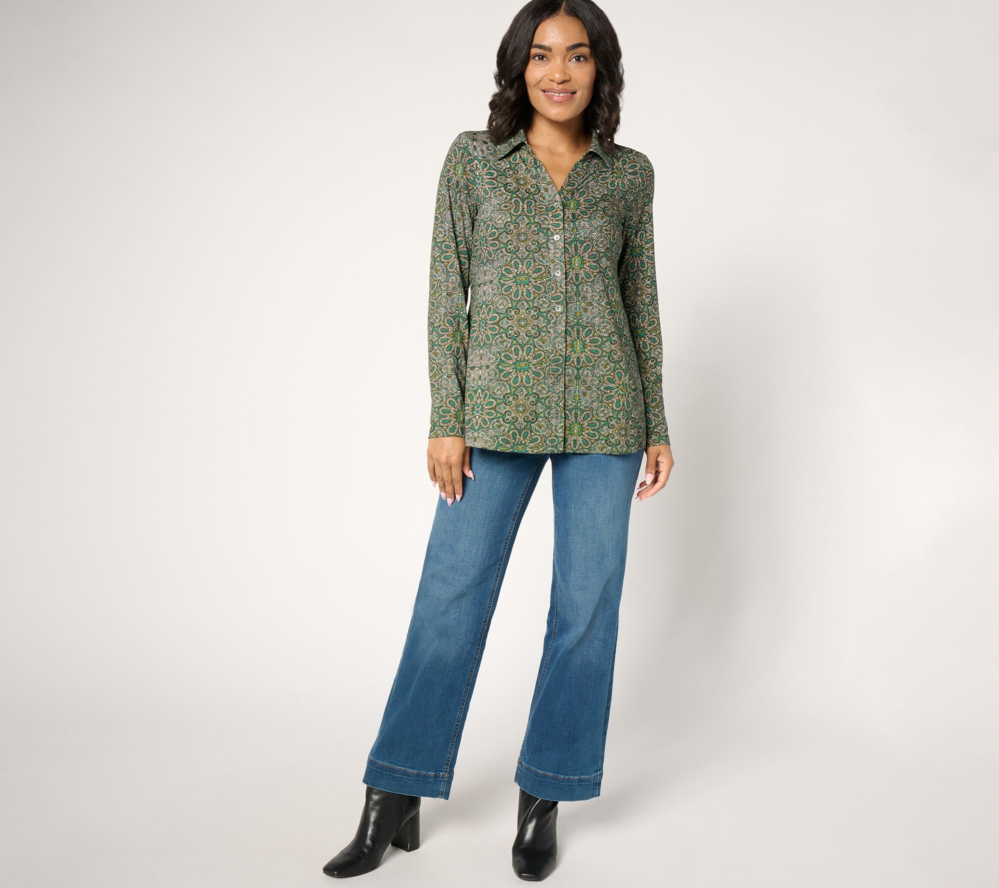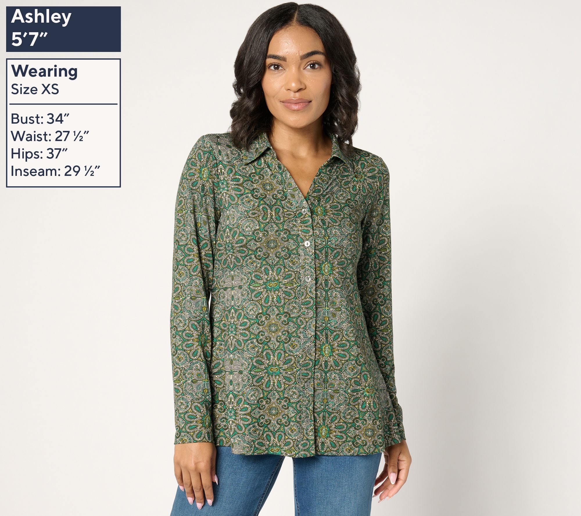 "As Is" Susan Graver Printed Brushed Liquid Knit A-Line Top