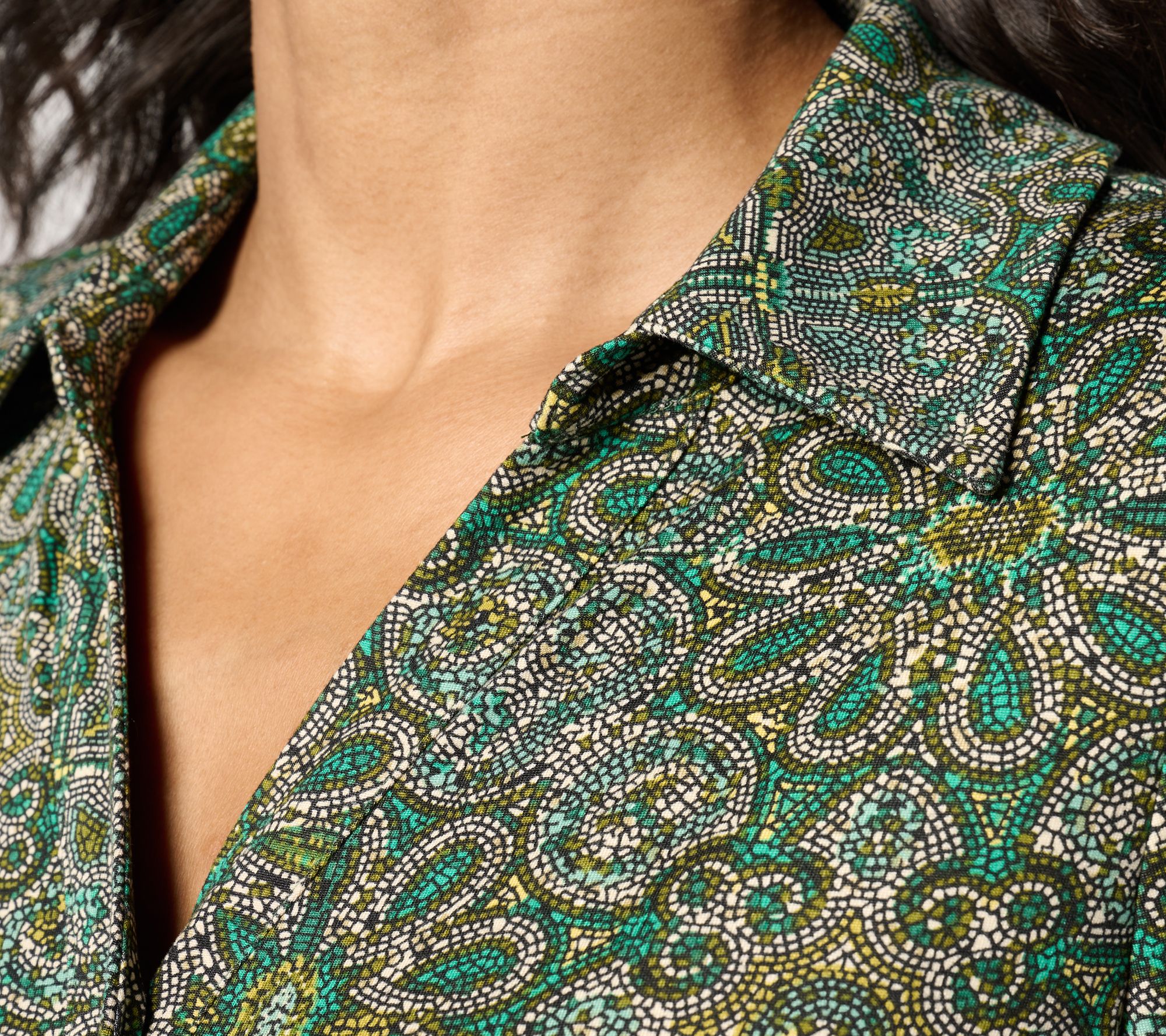 • Fit: semi-fitted; follows the lines of the body with added wearing ease