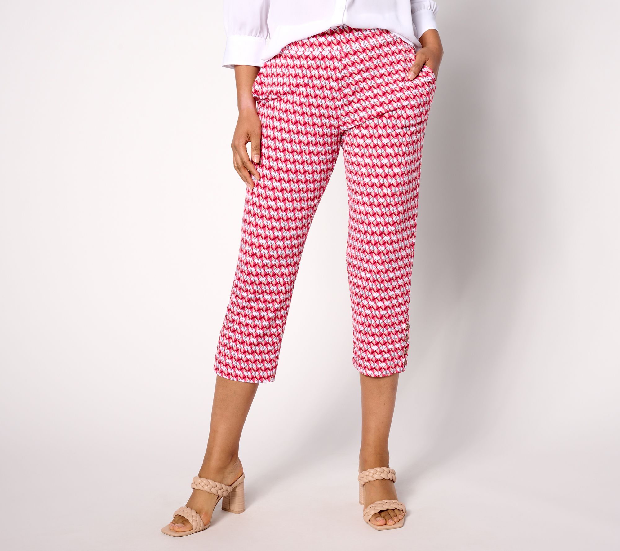 "As Is" Susan Graver Printed Liquid Knit AVA Slim Leg Crop Pants w/ Button