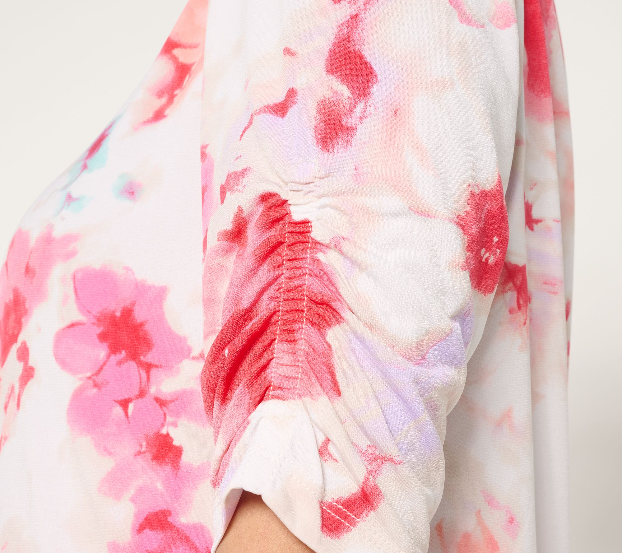 • Features: printed, ruched sleeves with encased elastic, crew neckline