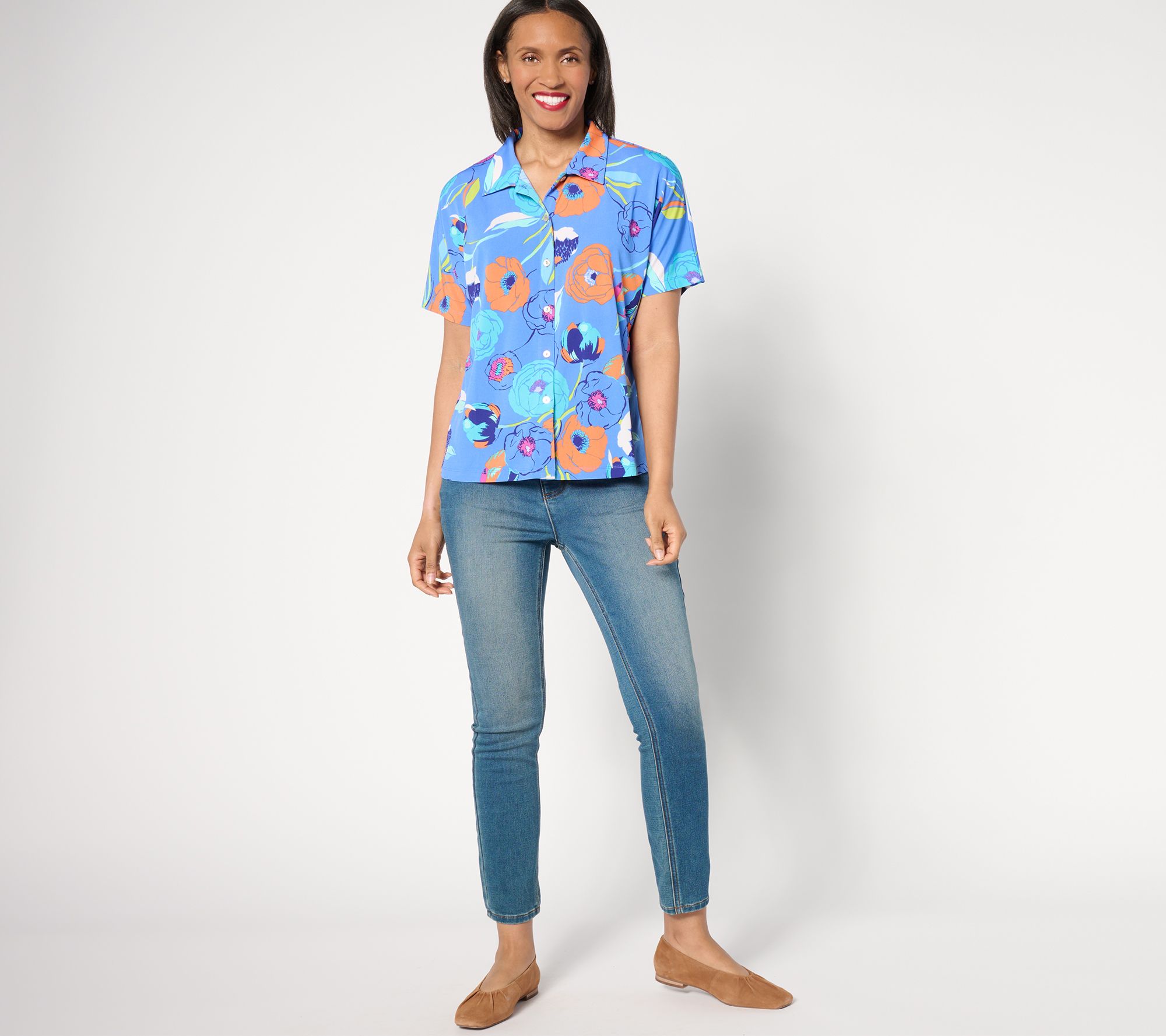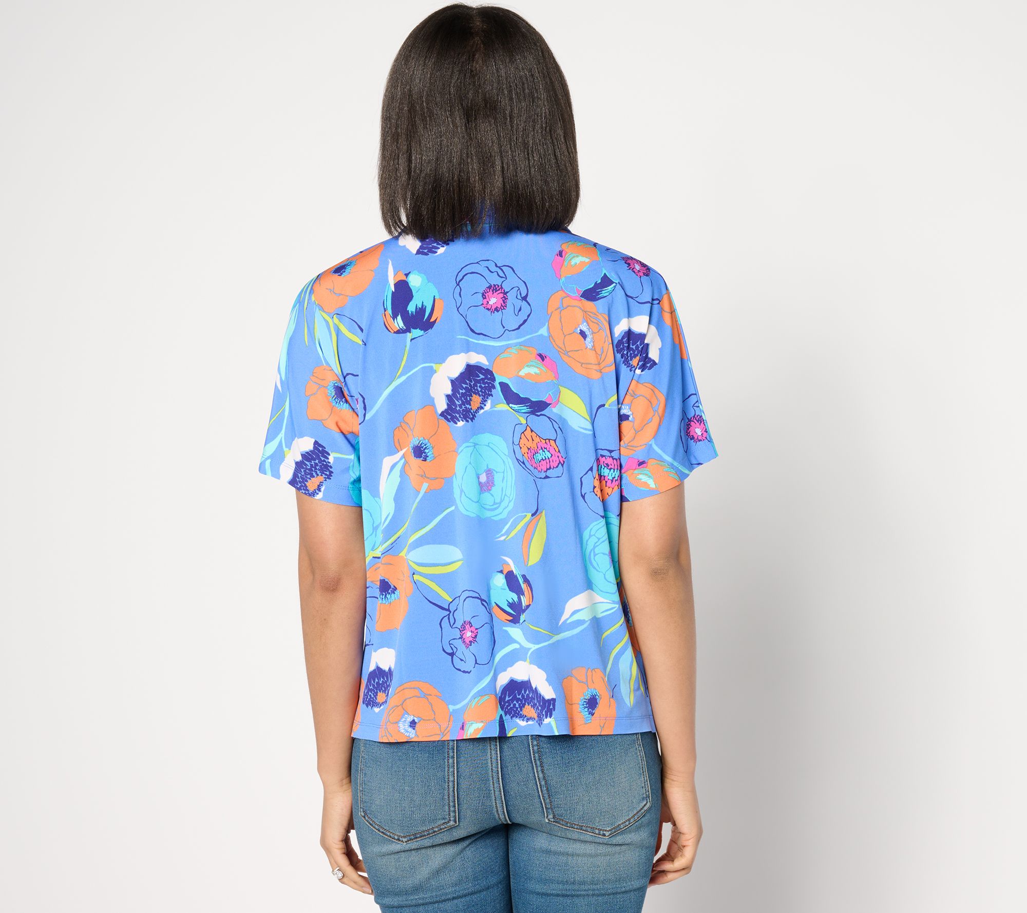 "As Is" Susan Graver Printed Liquid Knit Dolman Sleeve Camp Shirt