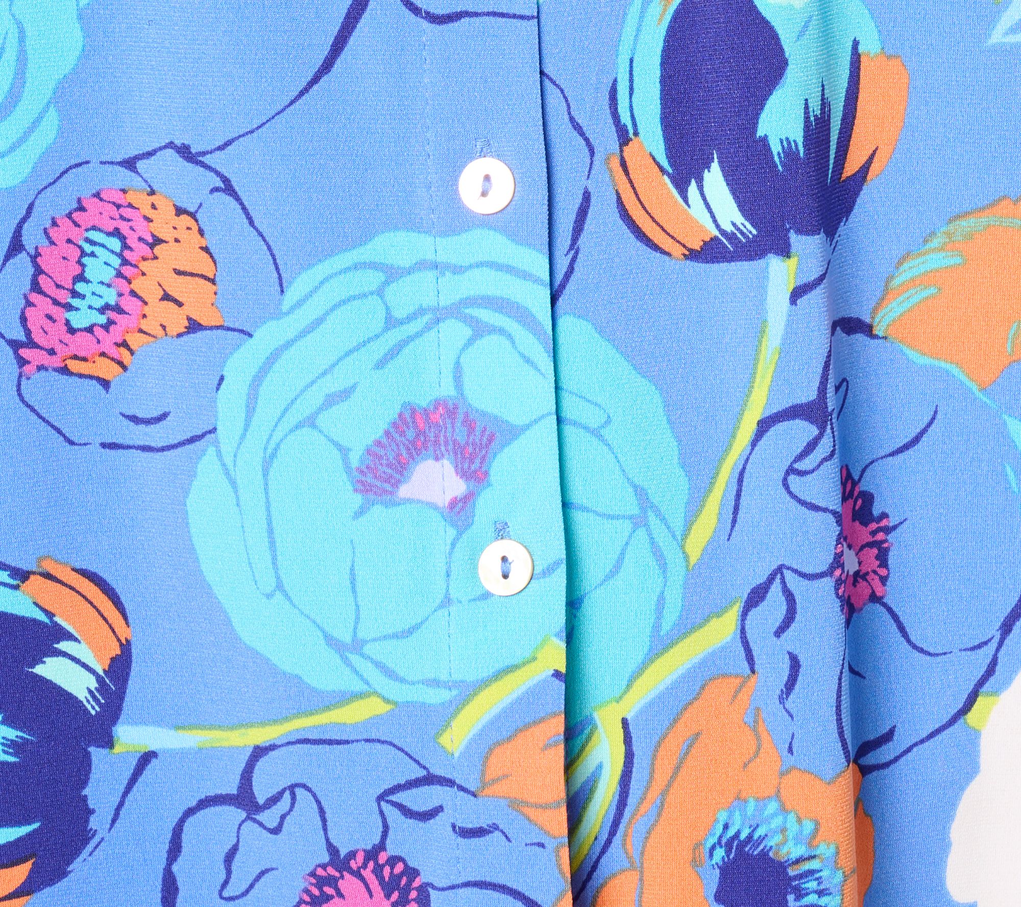 • Features: allover print, collar, button-front closure, elbow-length dolman sleeves, straight hem with small side slits