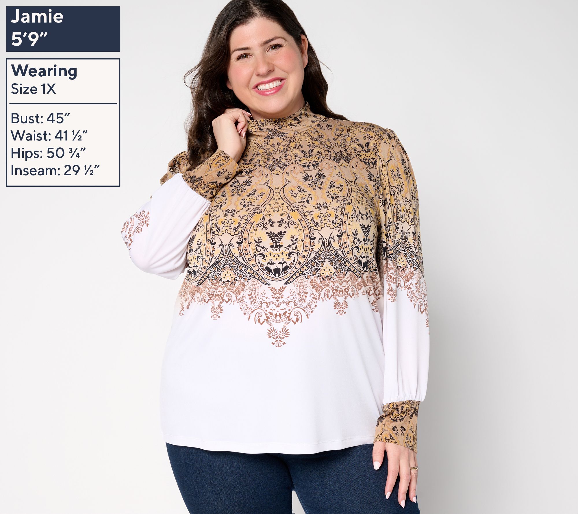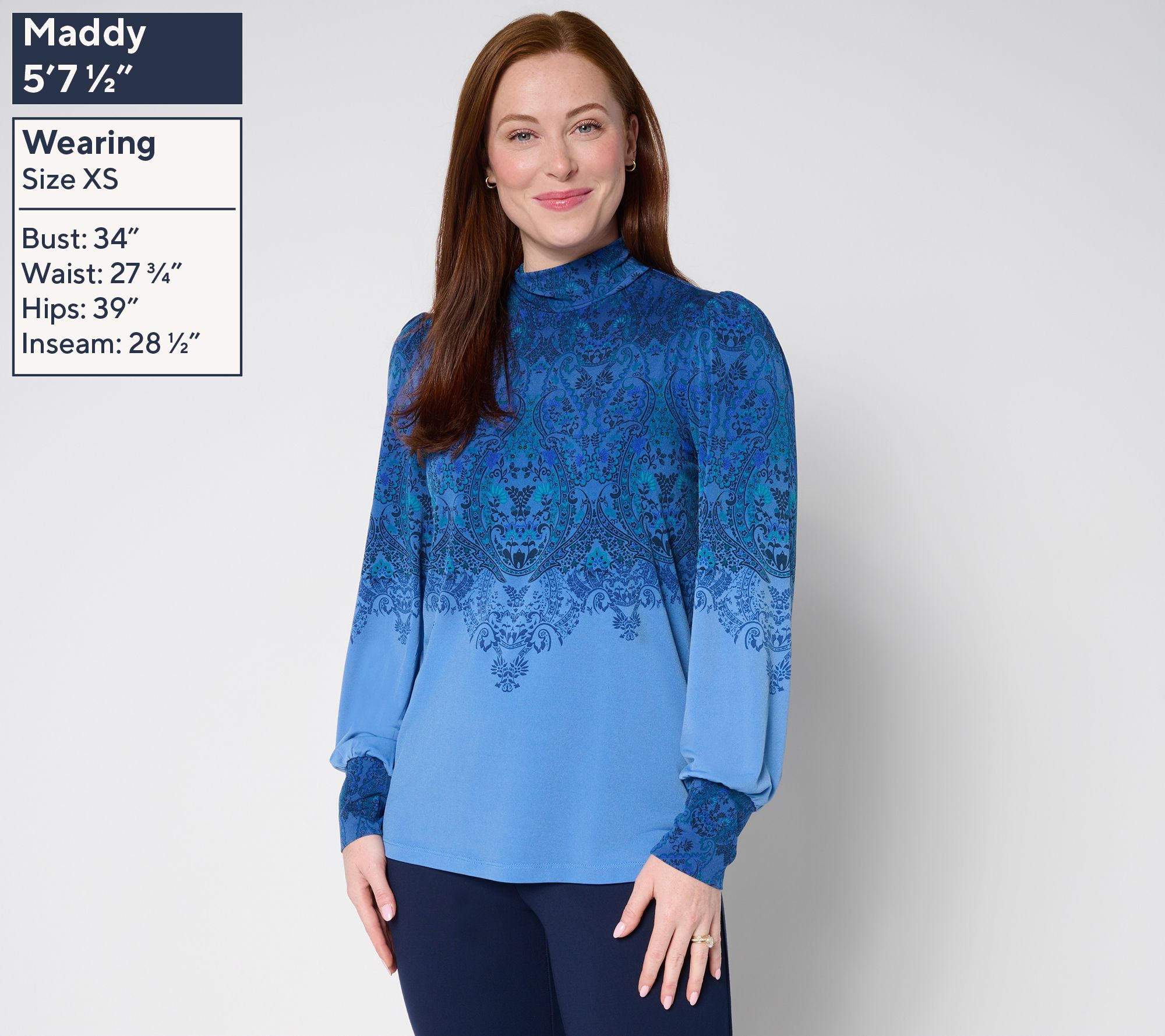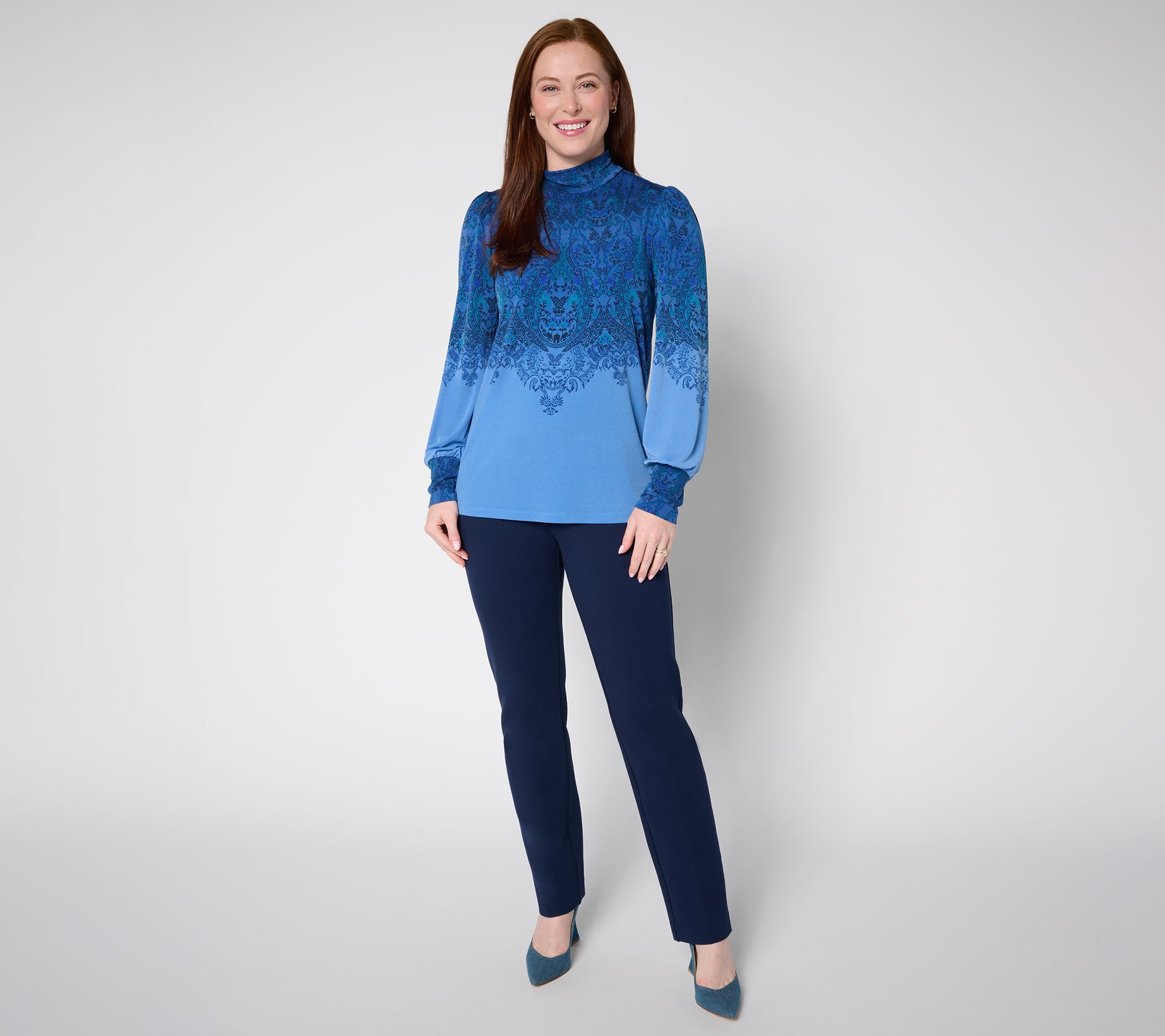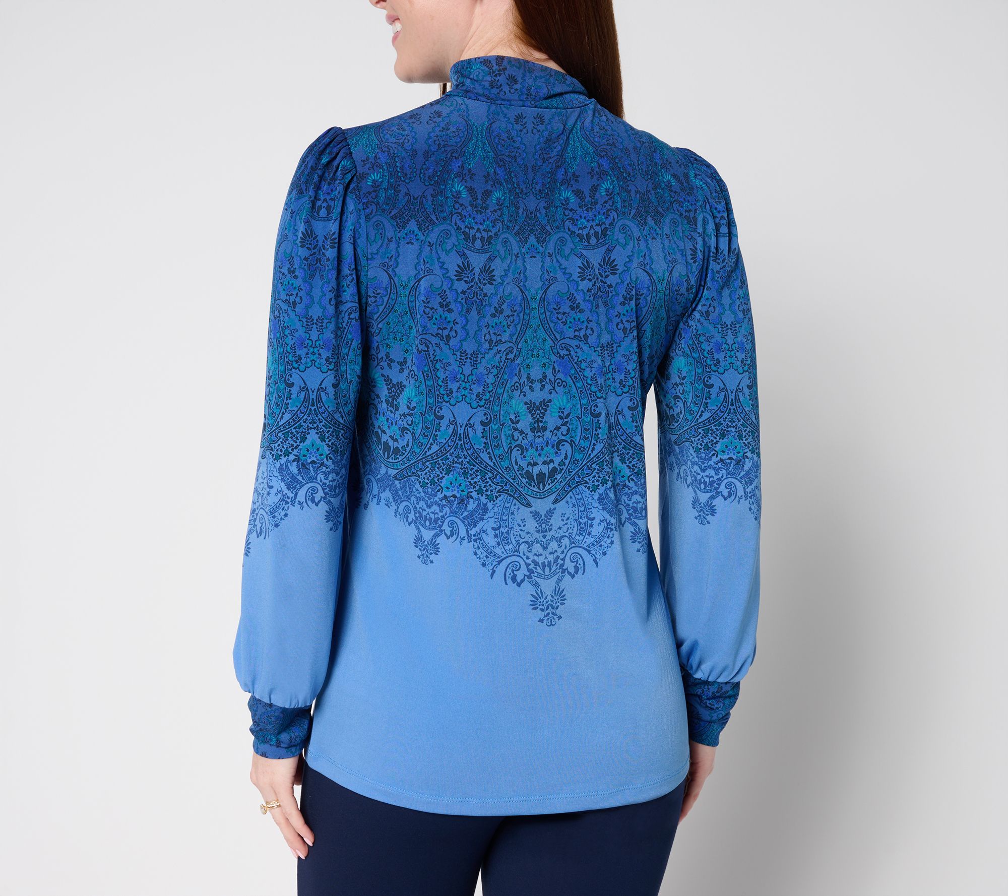 "As Is" Susan Graver Printed Liquid Knit Mock Neck Top w/ Blouson