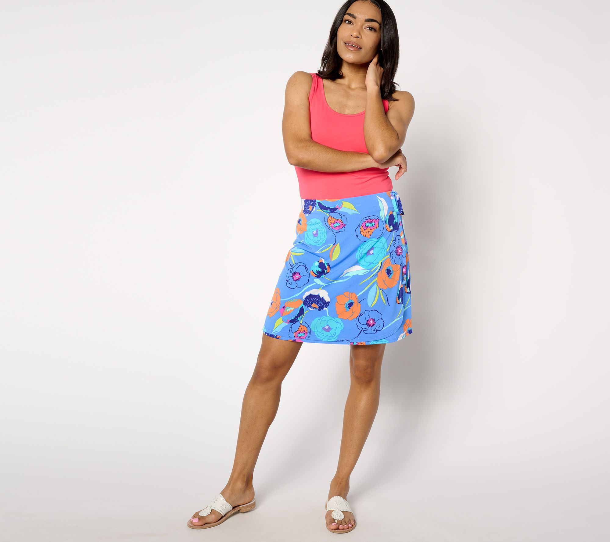 "As Is" Susan Graver Printed Liquid Knit Skort with Tie Detail