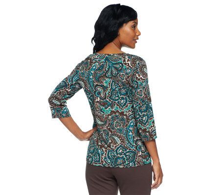 "As Is" Susan Graver Printed Liquid Knit V-neck 3/4 Sleeve Top