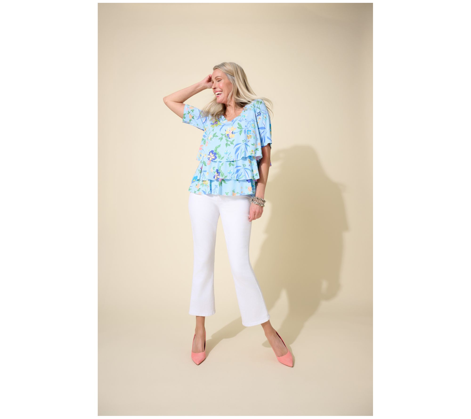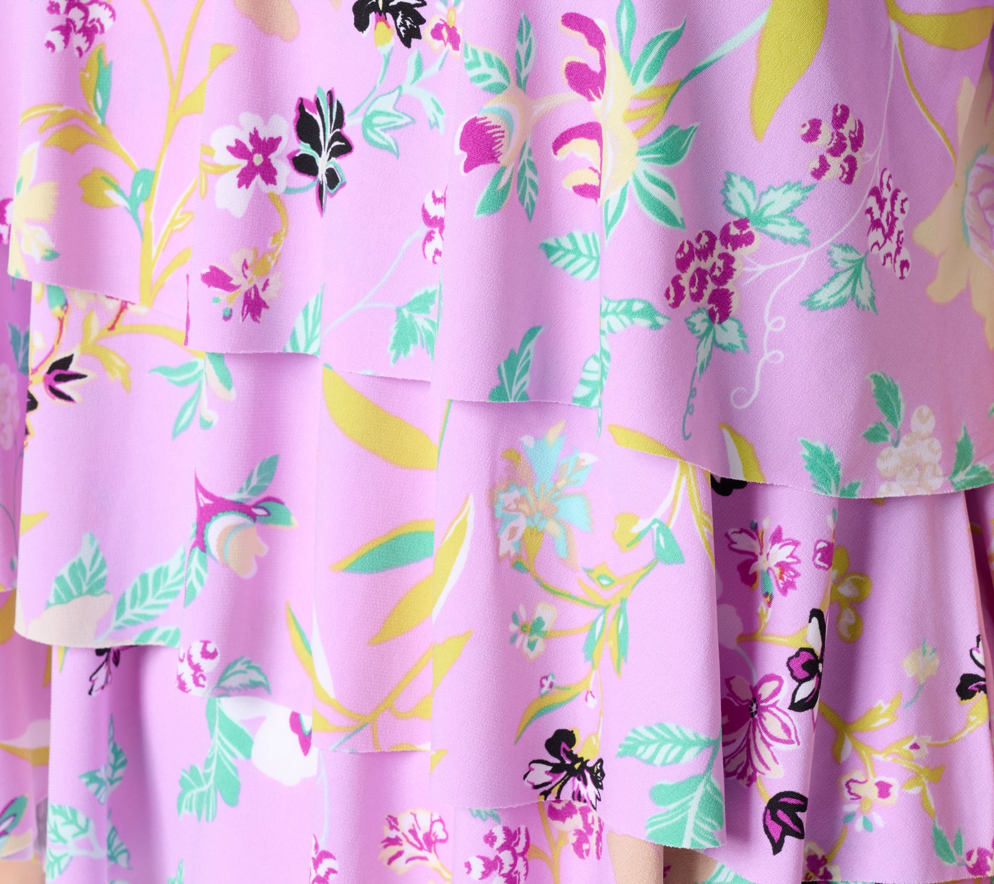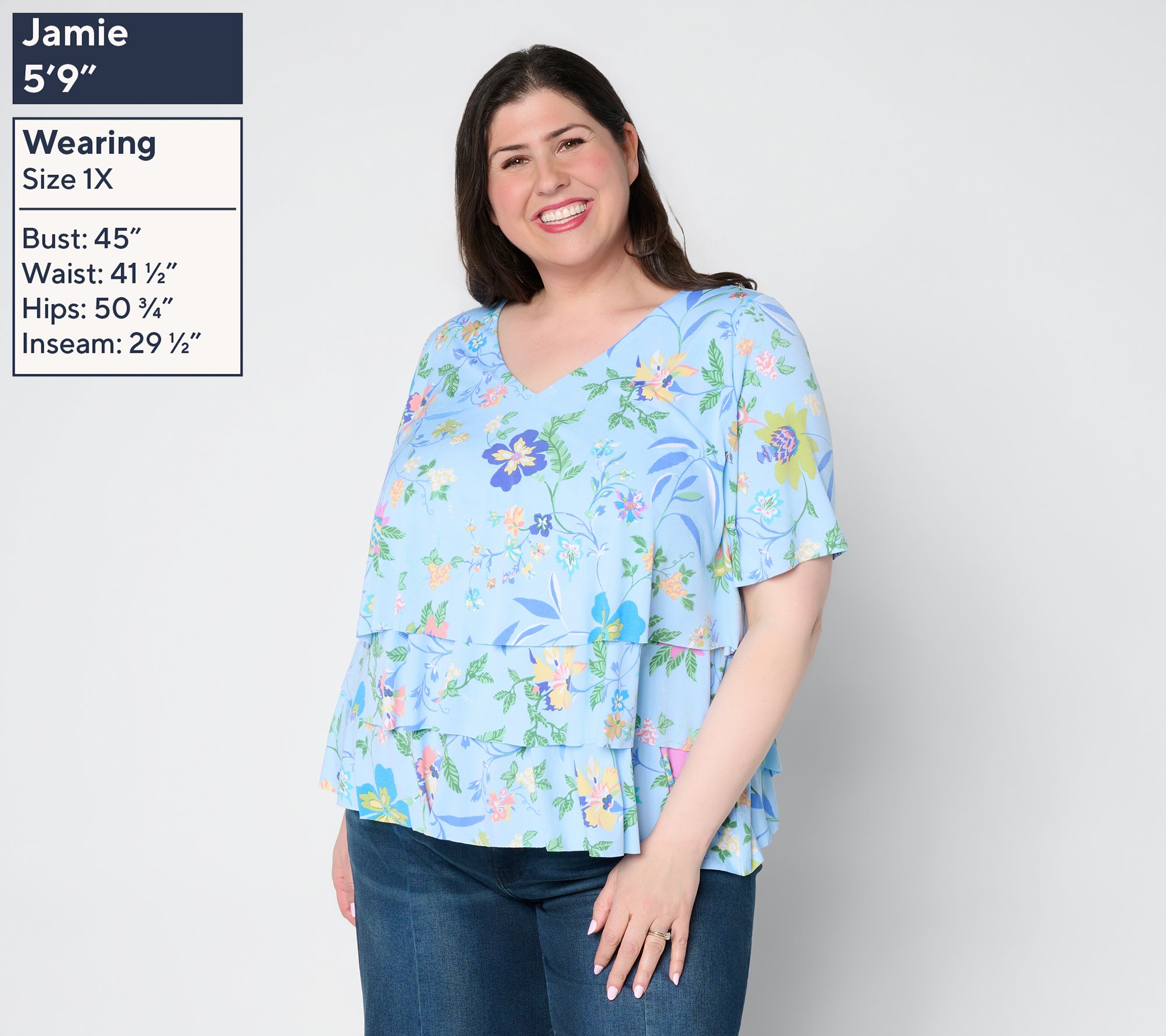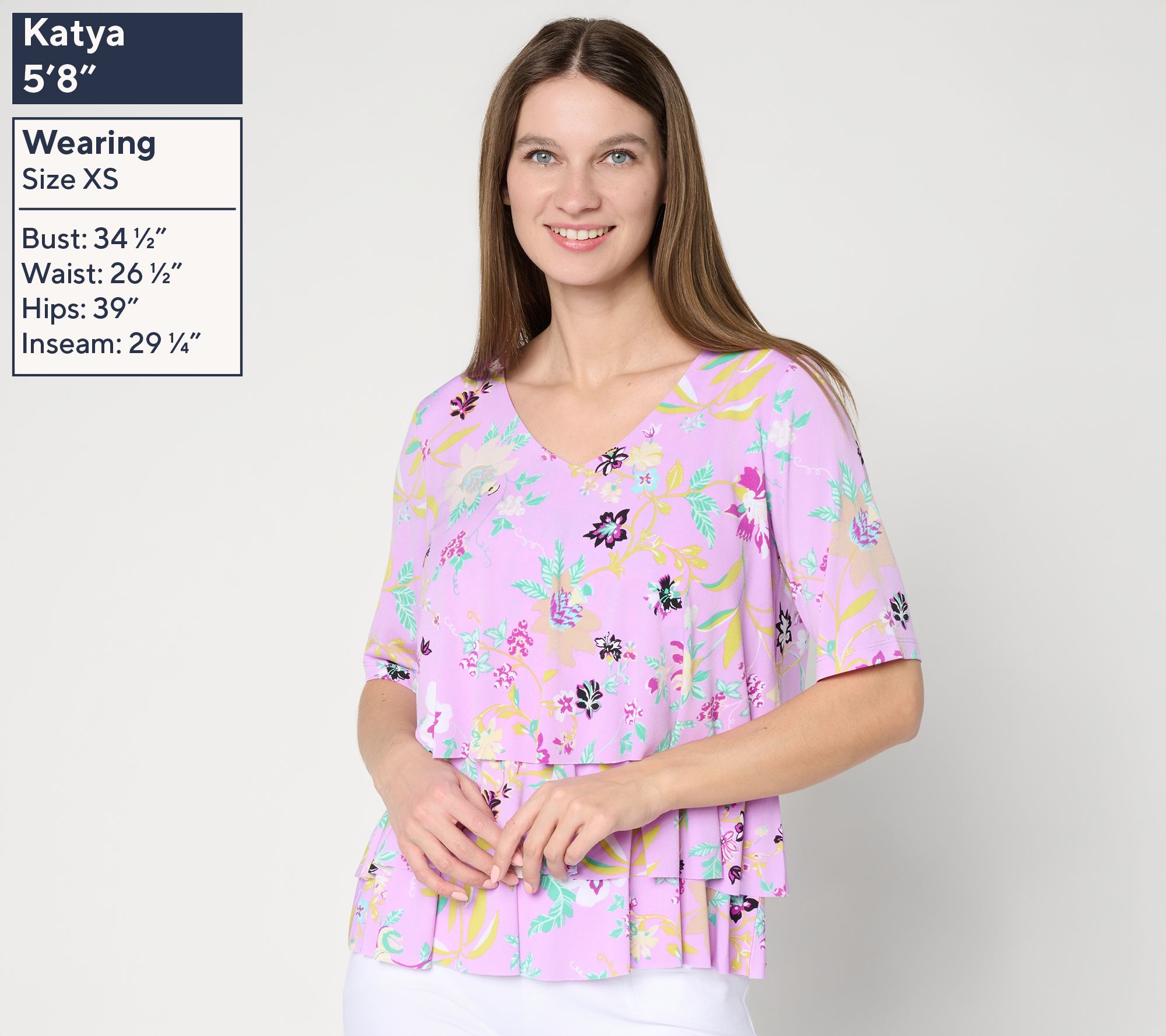 A pretty print and Liquid Knit fabrication make this top a must-have. But Susan Graver didn't stop there! She added in a flattering V-neckline and forgiving tiered design so you can sport springtime vibes and feminine flair for any event on your warm-weather calendar. From Susan Graver.