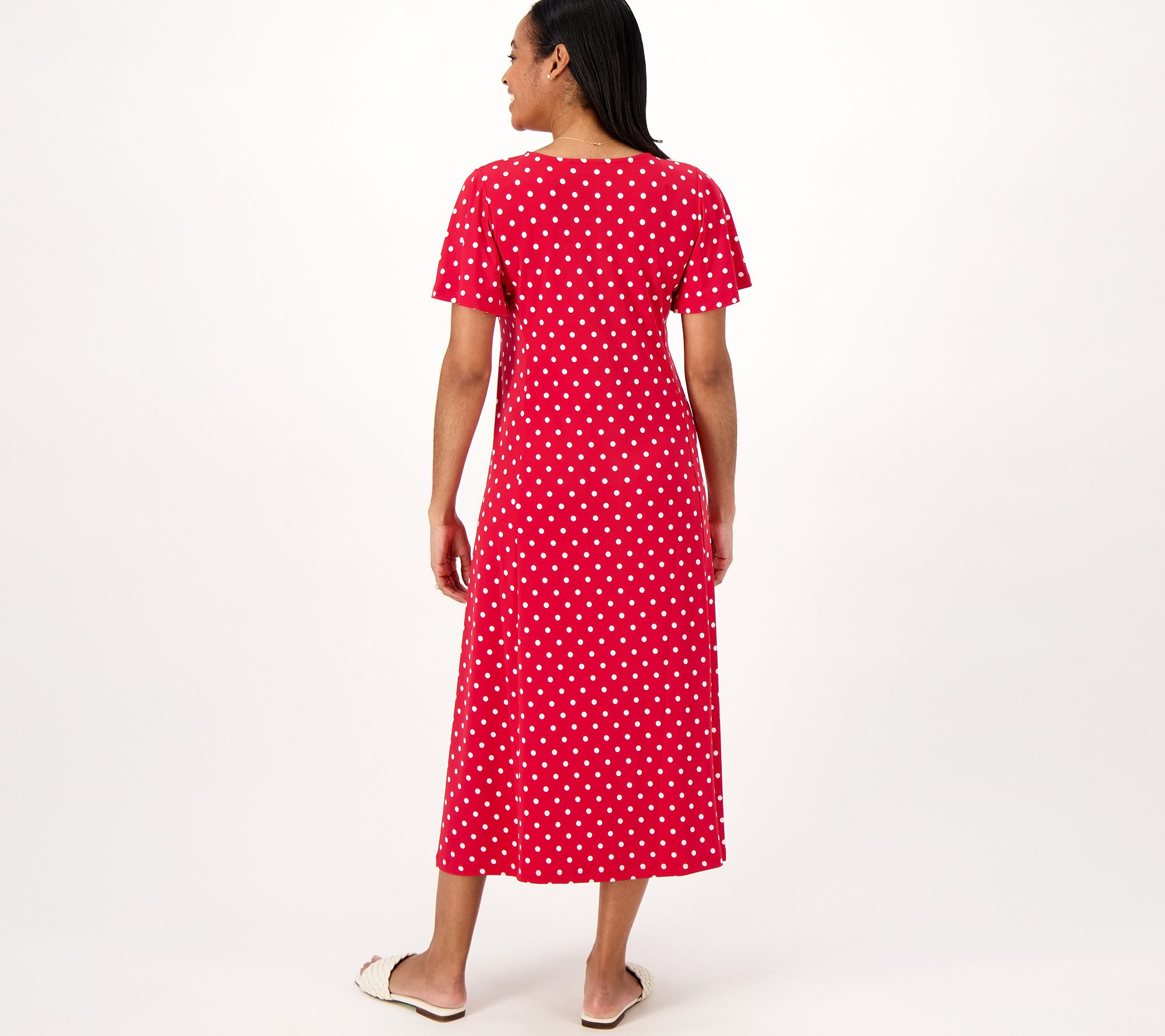 "As Is" Susan Graver Printed Petite Liquid Knit Flutter Midi Dress