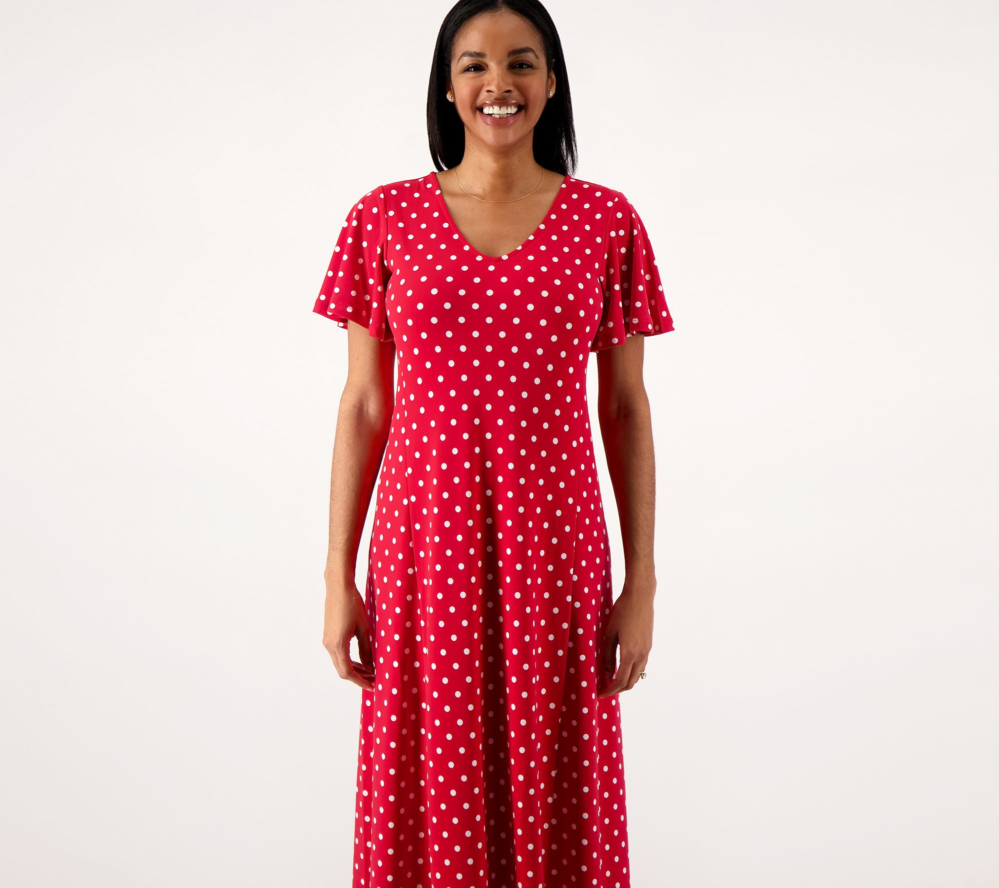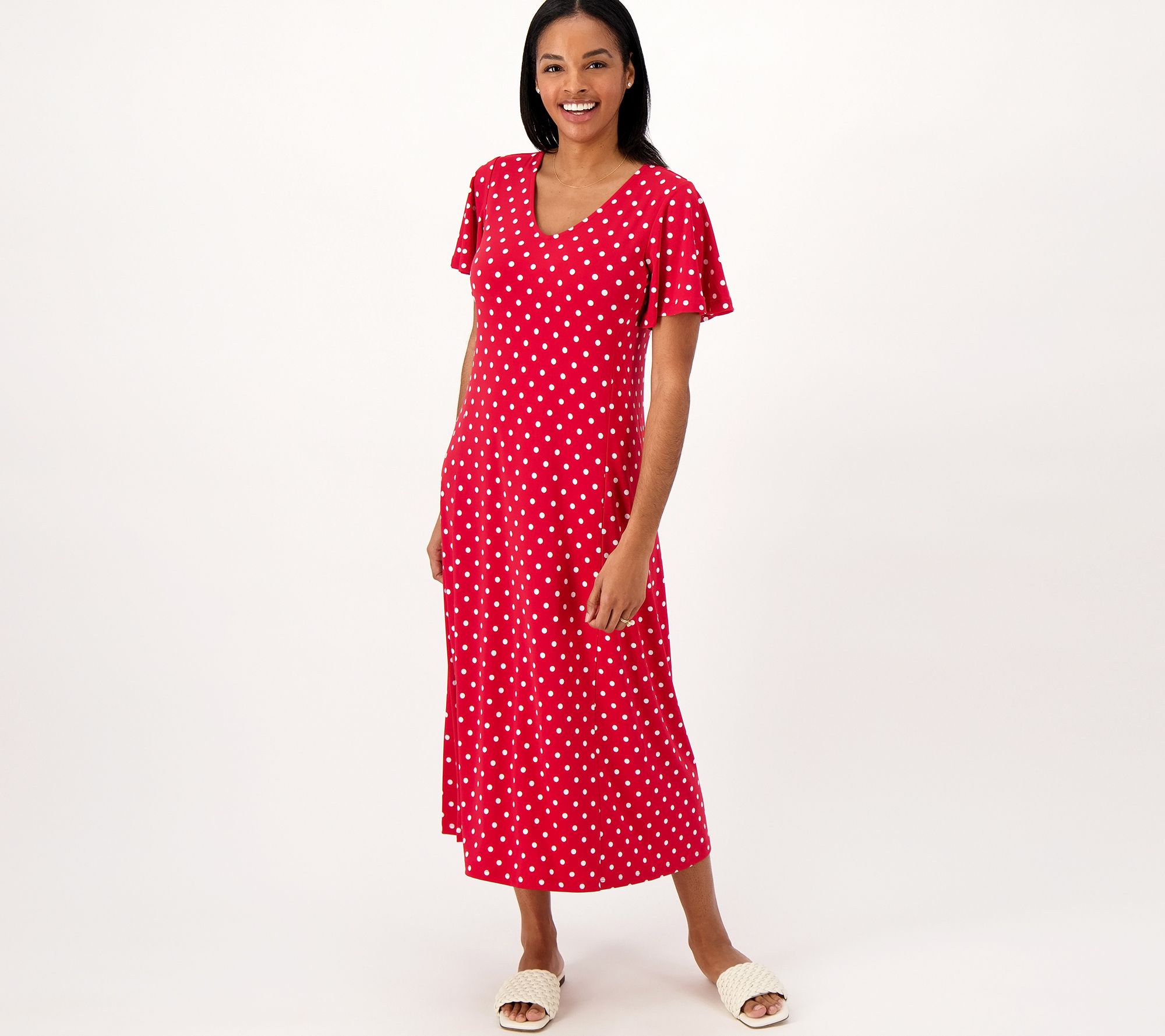 "As Is" Susan Graver Printed Regular Liquid Knit Flutter Sleeve Midi