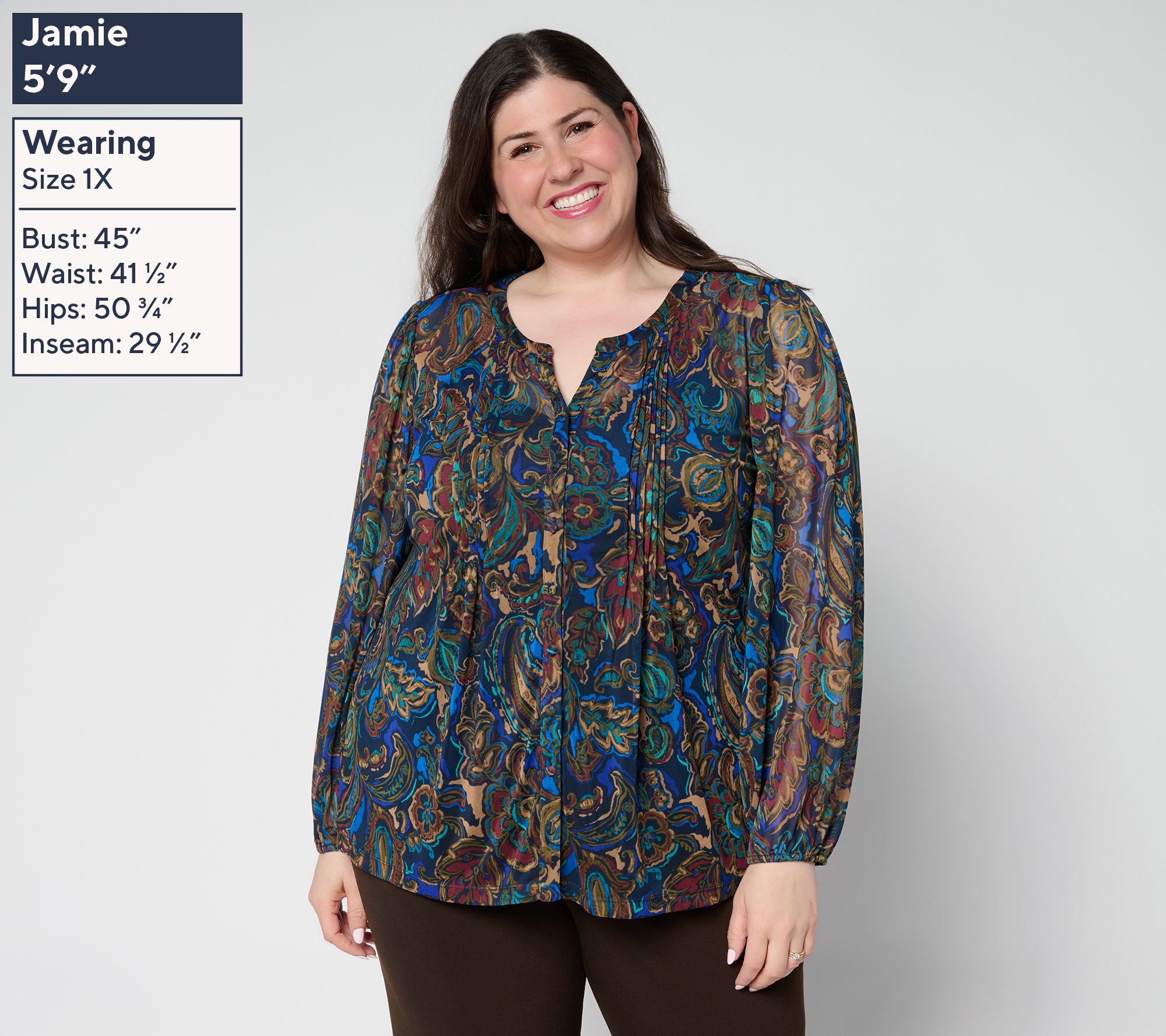 • Blouse Length: missy length 26-1/2" to 28-5/8"; plus length 29" to 32-1/2"