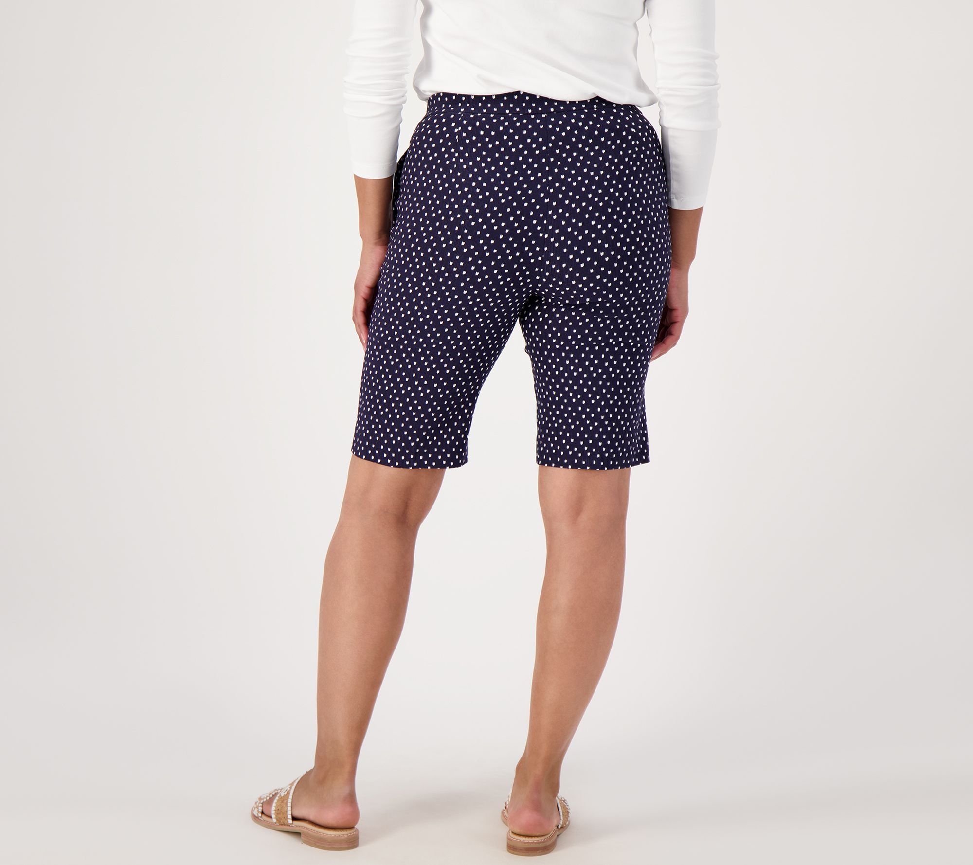 Time to step into the sunshine (and out of your sweats). Sleek and slimming, these printed pull-on shorts are ready for summertime soirees and other outdoor adventures. From Susan Graver.
