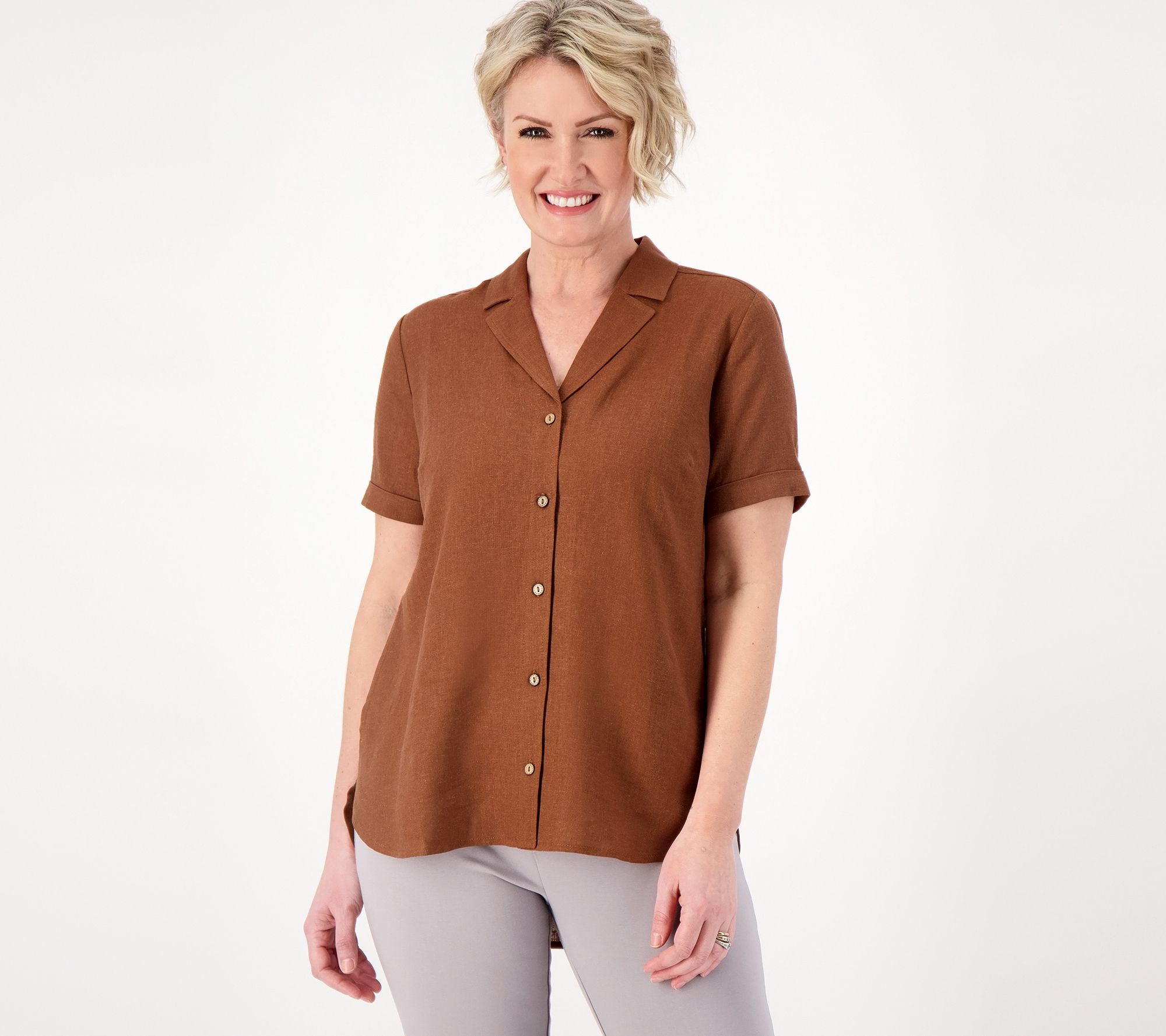 "As Is" Susan Graver PURE Linen Blend Petite Button Front Shirt