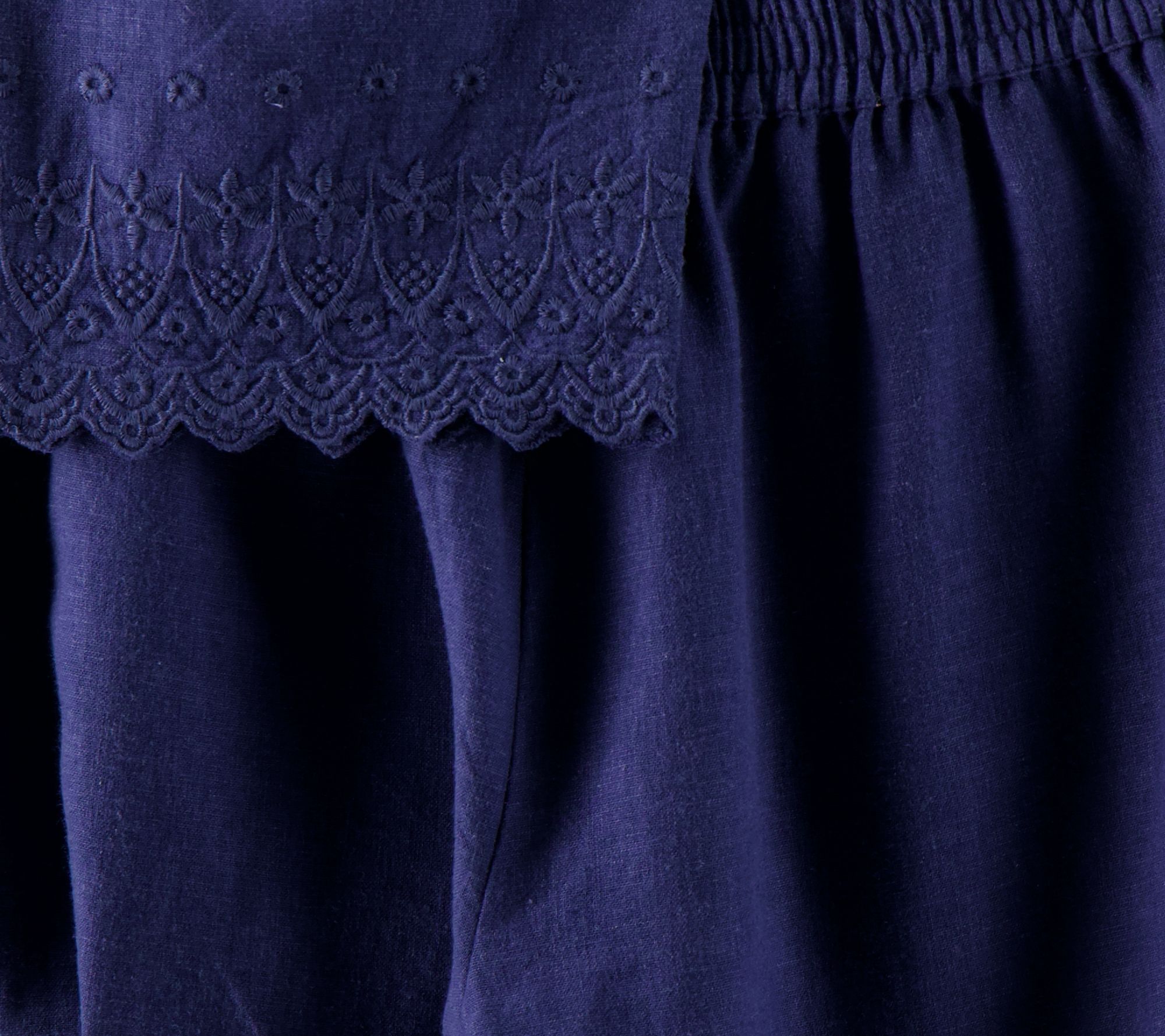 • Features: cropped design, pull-on style, eyelet embroidery, scalloped hemline, side-seam pockets