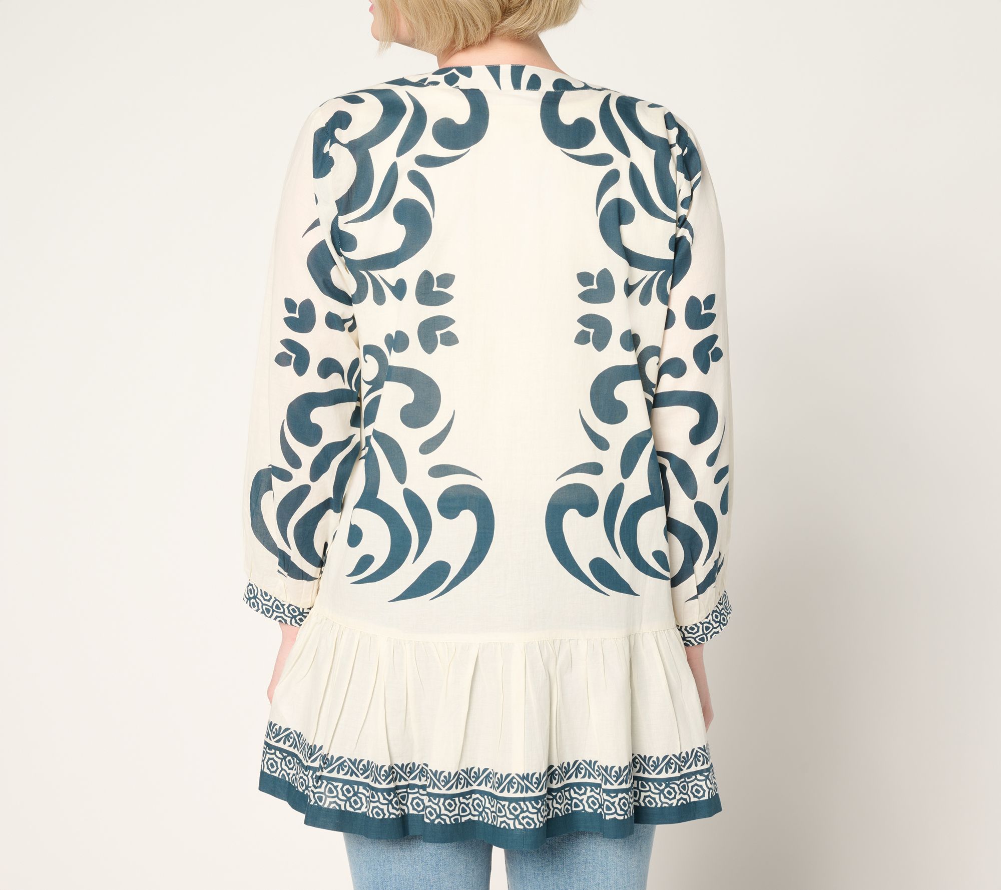 "As Is" Susan Graver PURE Pet Printed Cotton Duster with Flounced Hem
