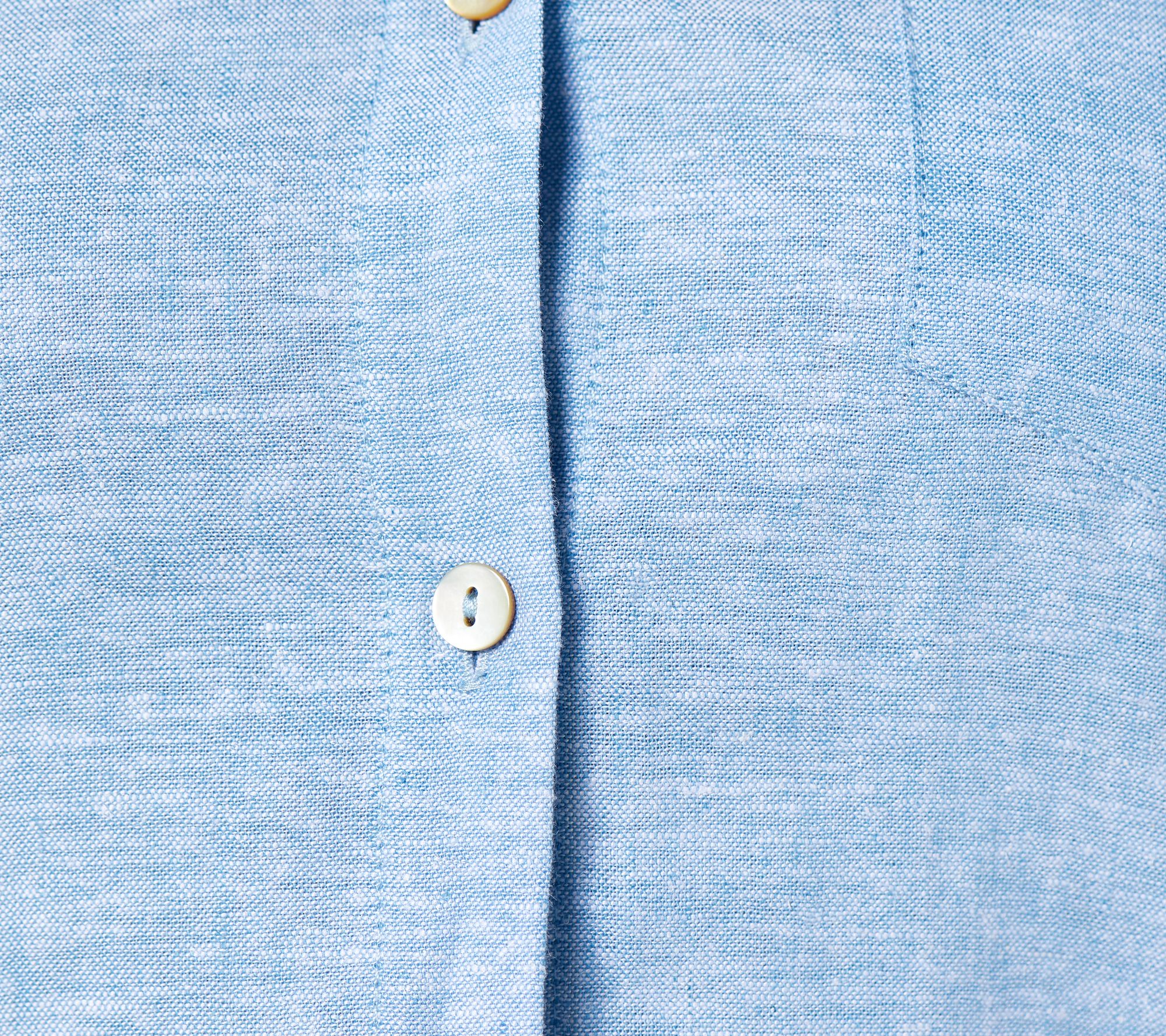Features: collared, button-front, patch pocket at left chest, tunic length, shirttail hem