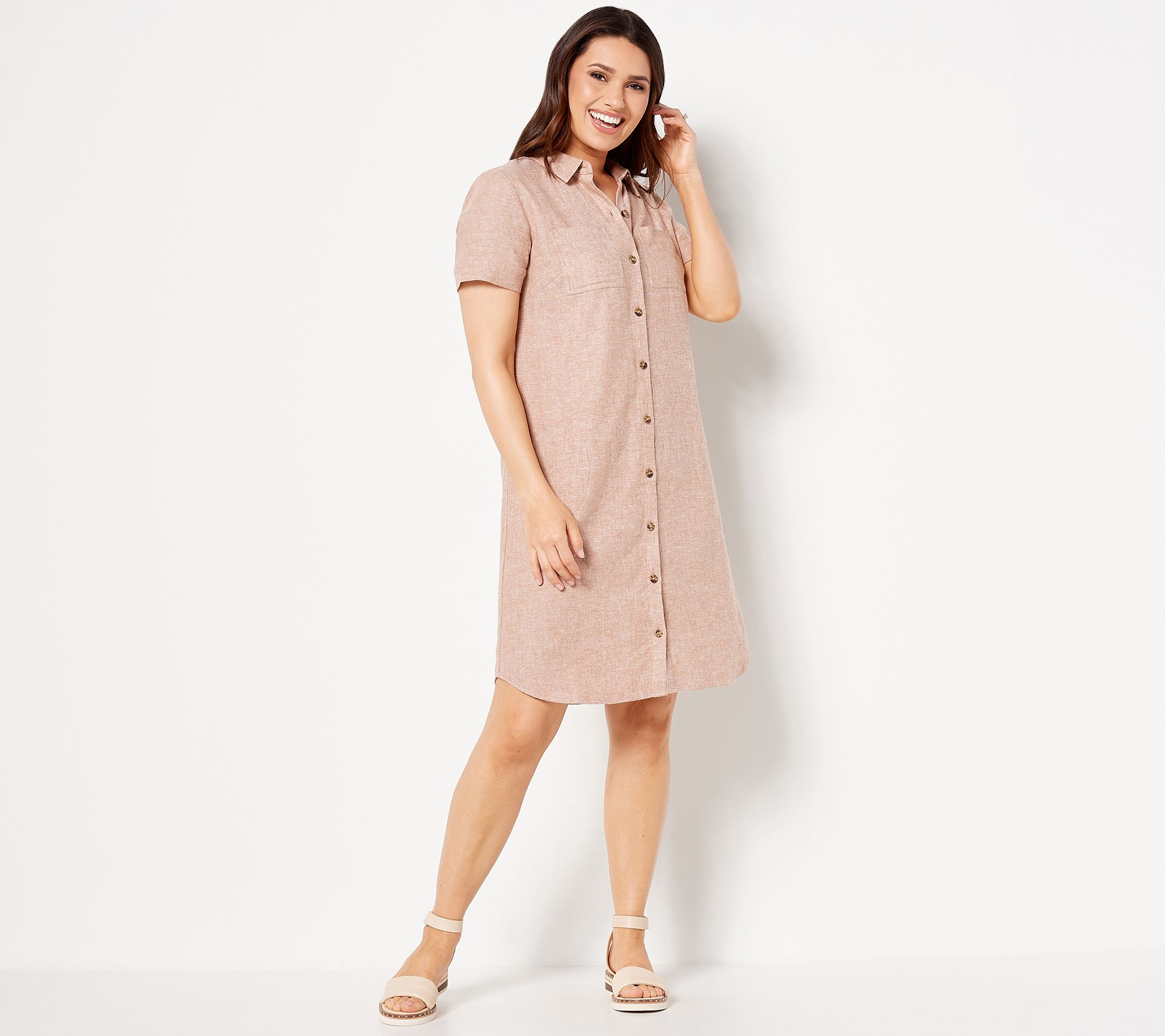 "As Is" Susan Graver Pure Petite Linen Blend Button Front Dress