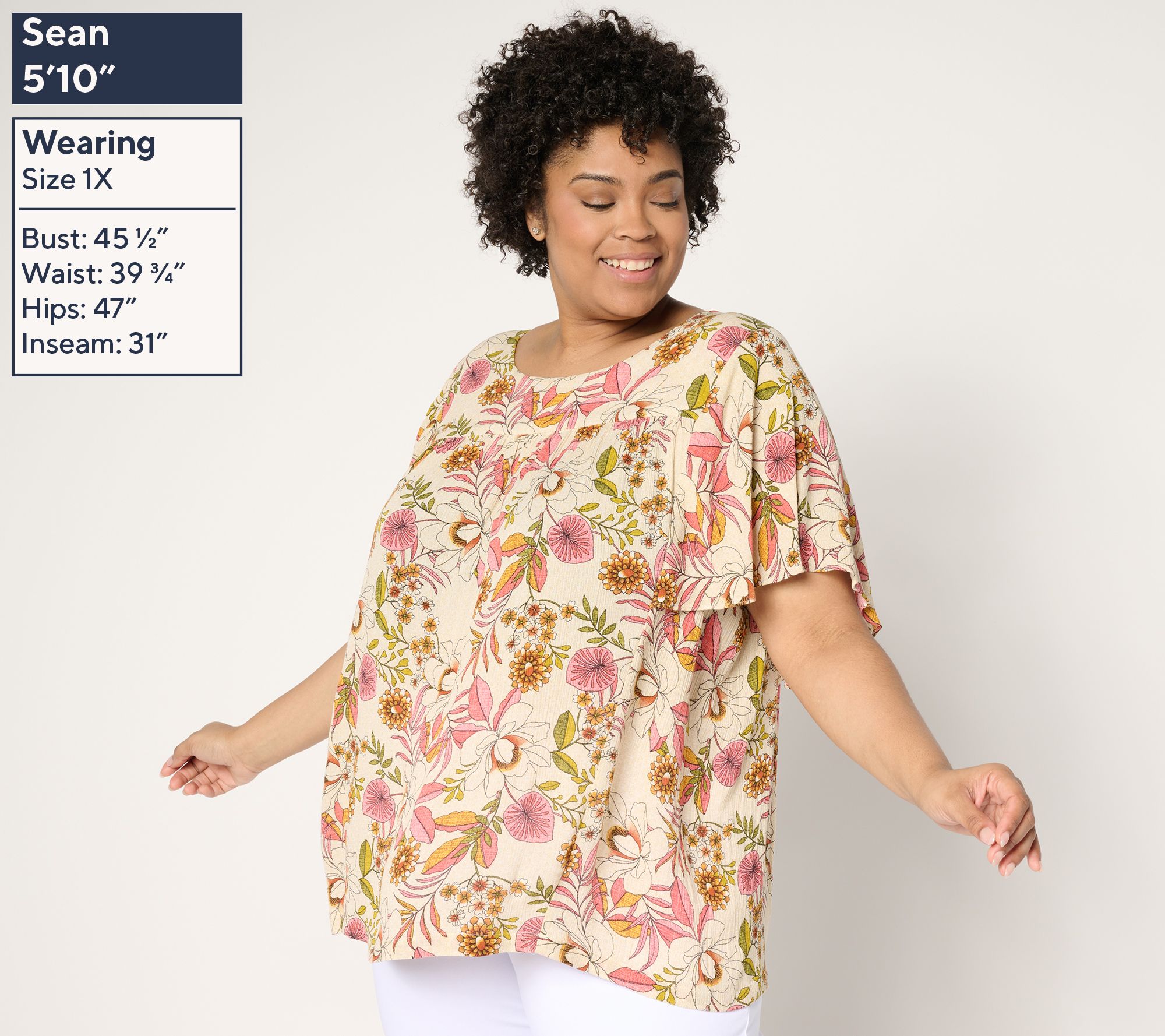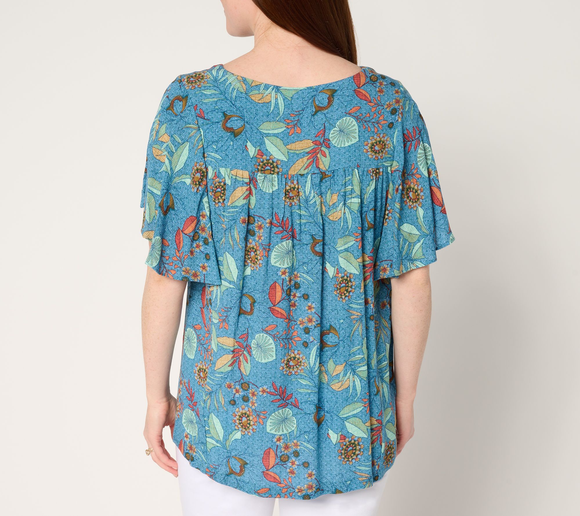 "As Is" Susan Graver PURE Printed Crinkle Woven Flutter Sleeve Top