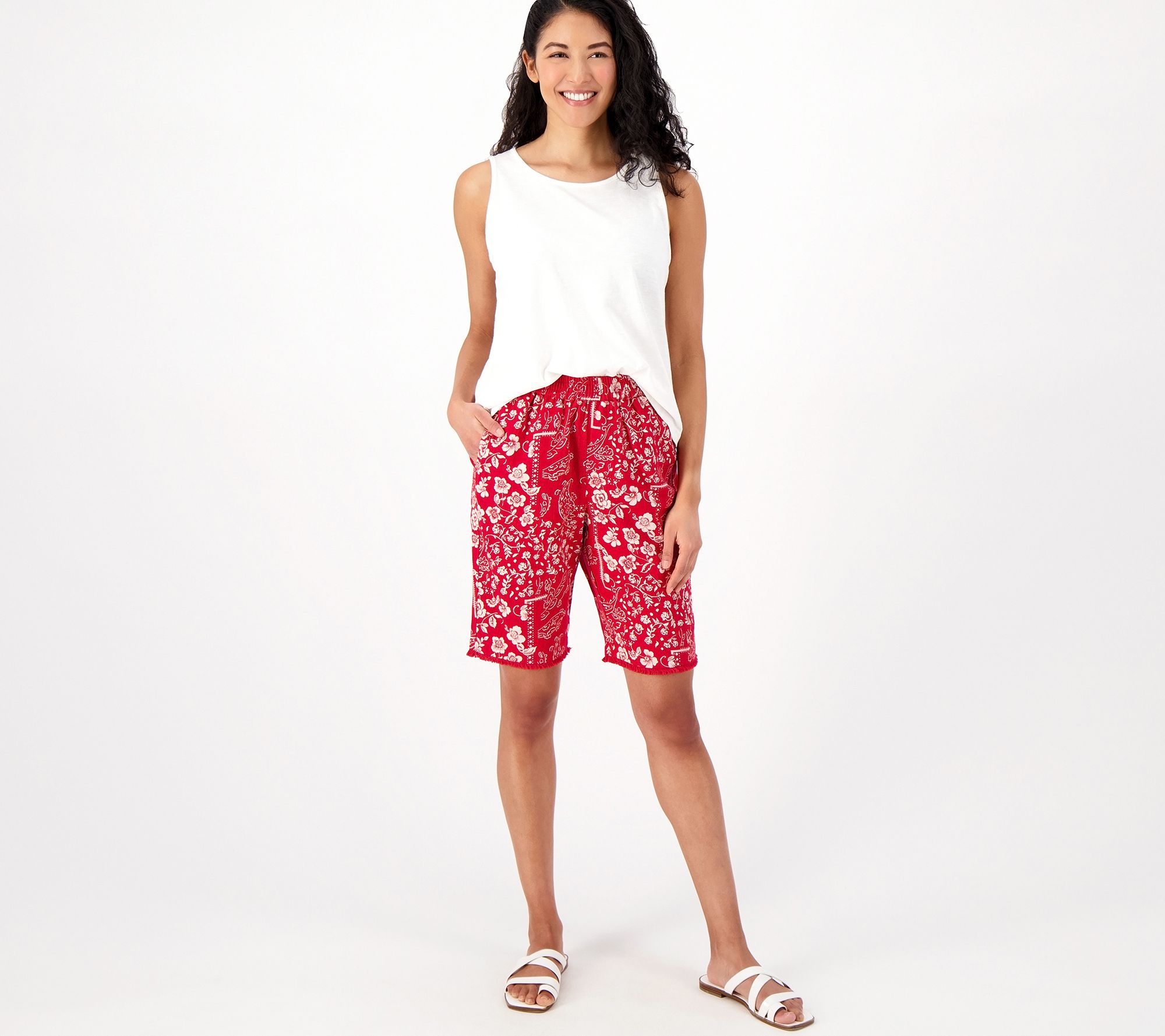 From everyday to vacay, these printed Bermuda shorts take you there in sweet style (with a frayed hem for a more lived-in look). From Susan Graver.