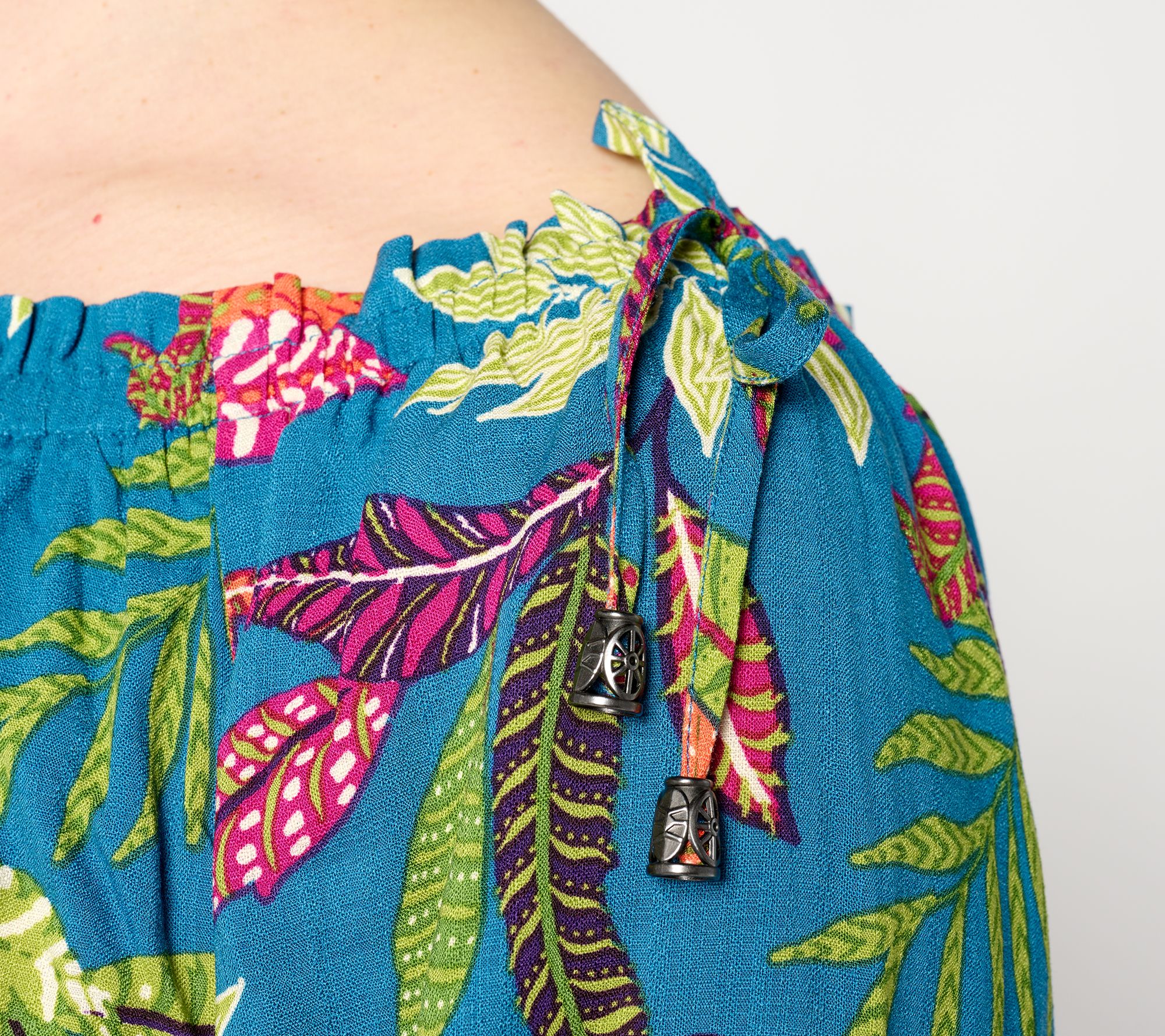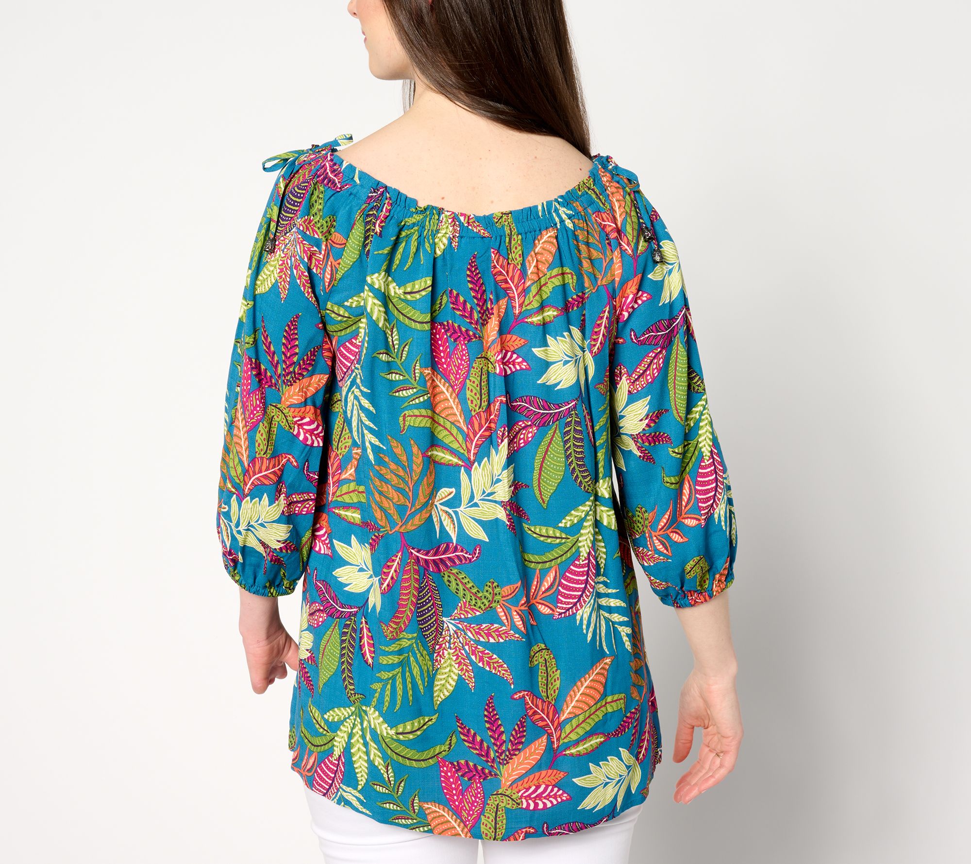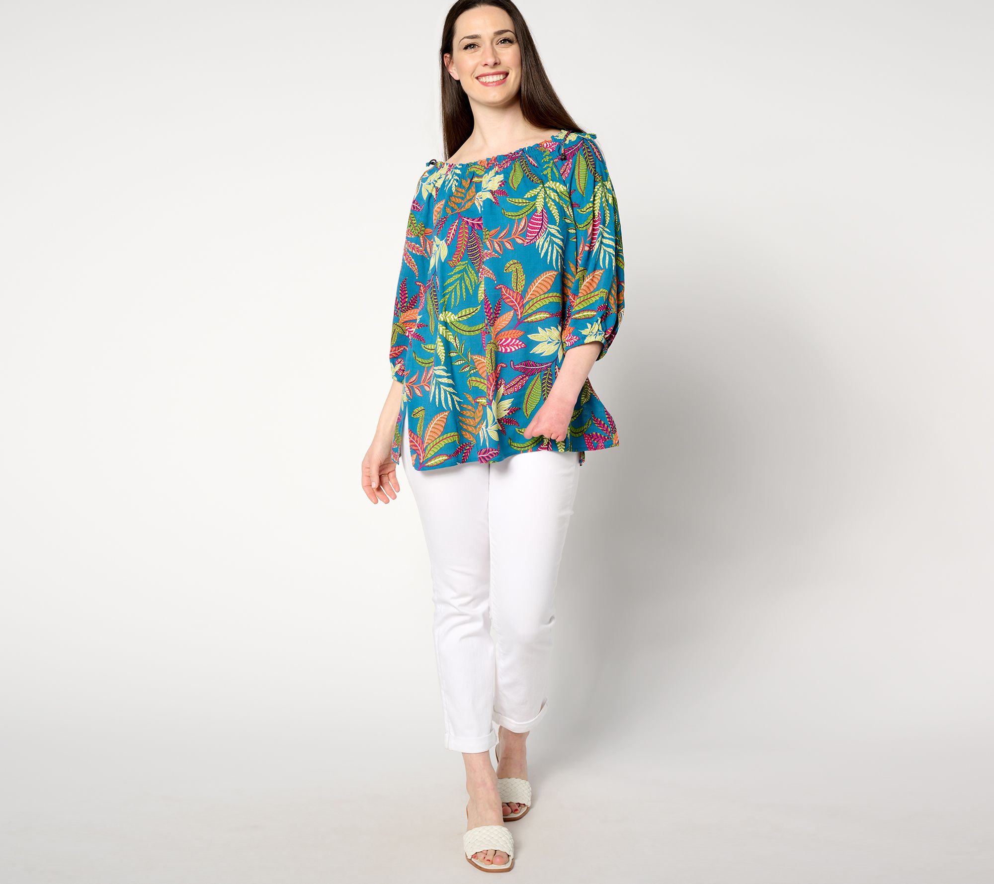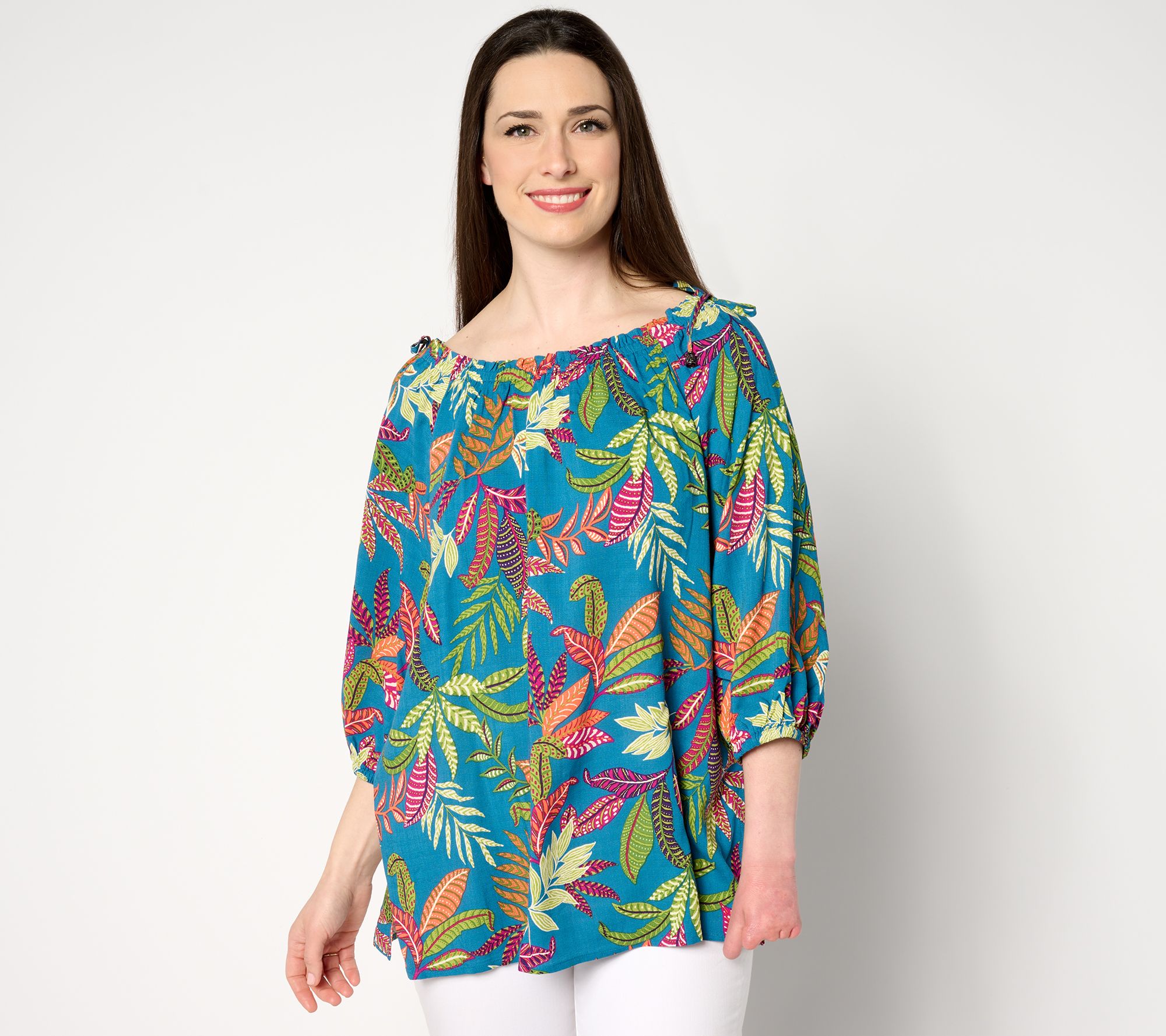 Pop a print! This splashy peasant-sleeve tunic takes your look out of neutral. Elegant and effortless for sharing a meal with friends or everyday family celebrations. From Susan Graver.