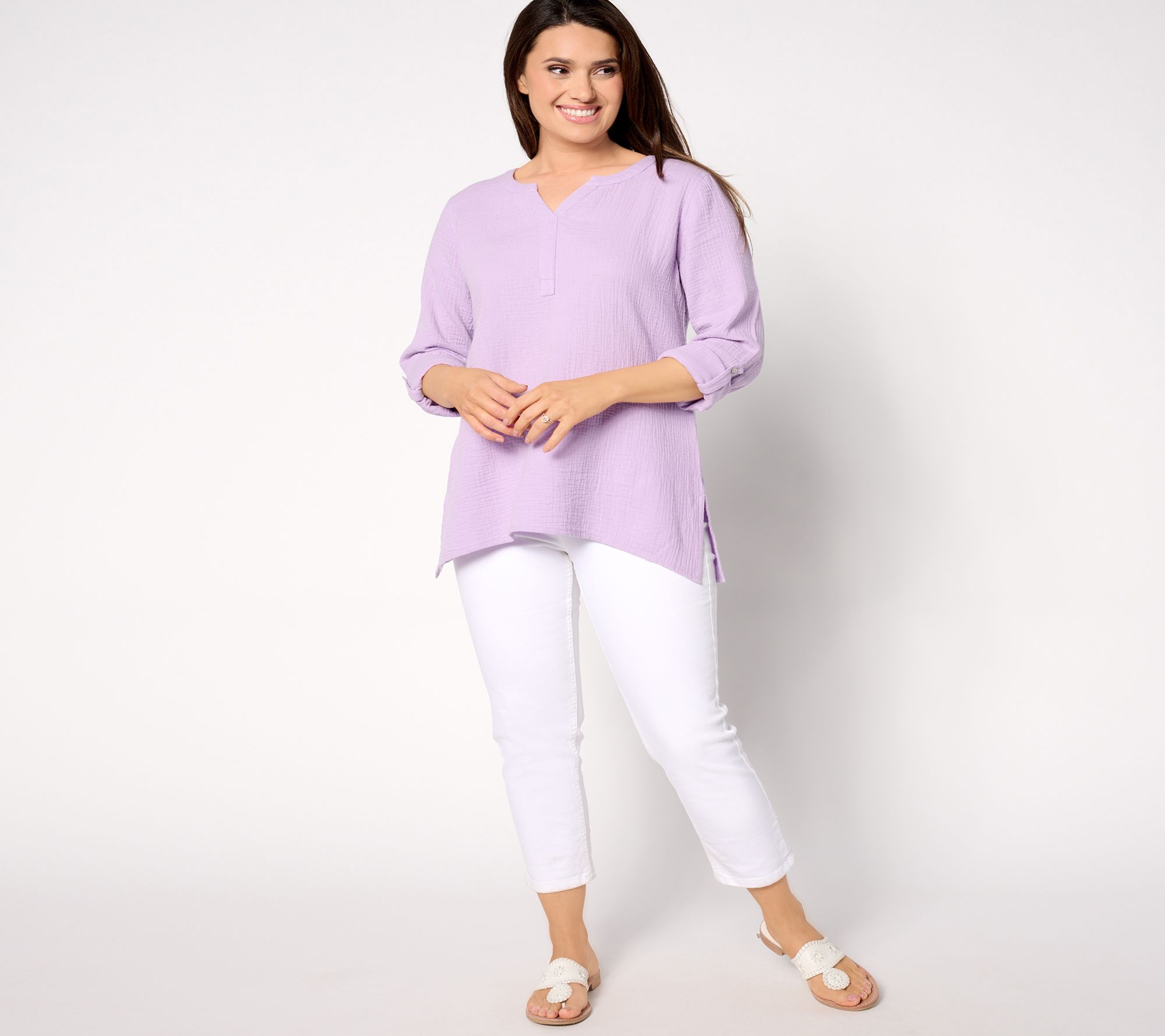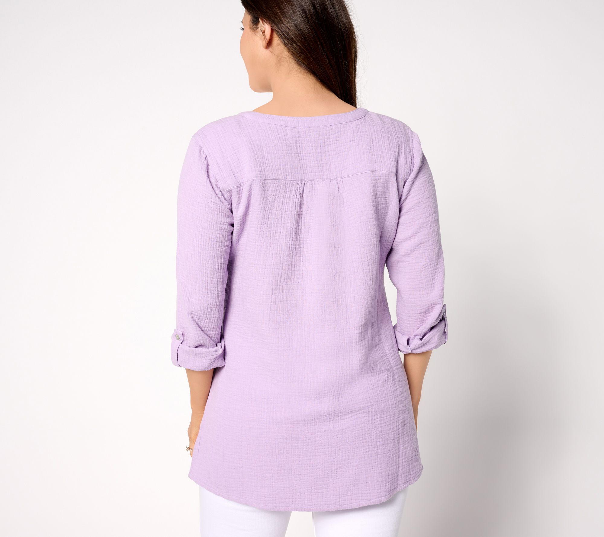 "As Is" Susan Graver PURE Regular Cotton Gauze Split- Neck Tunic