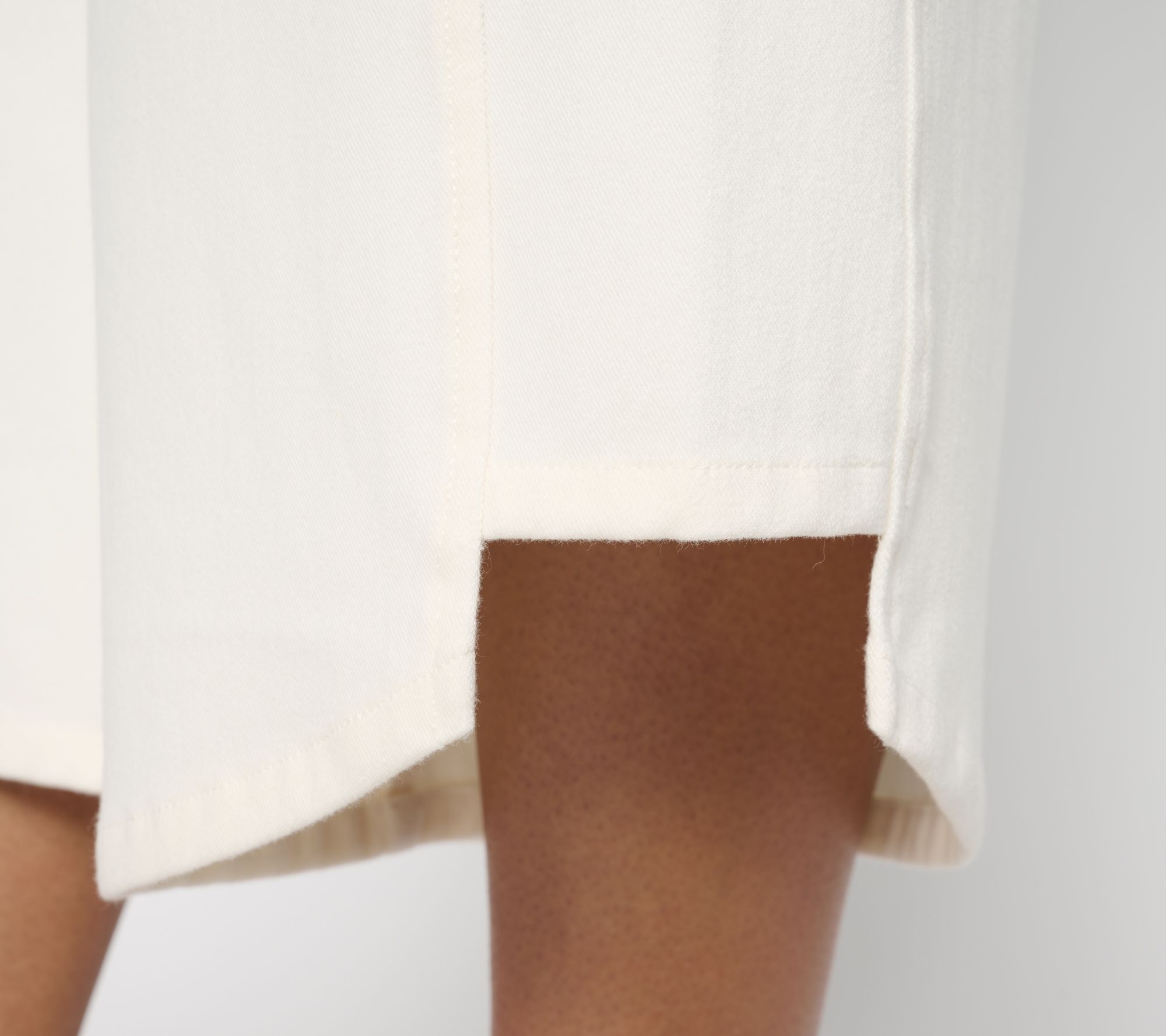 • Features: encased elastic waistband, back waistband dart, self side panel, curved hems with longer inseam