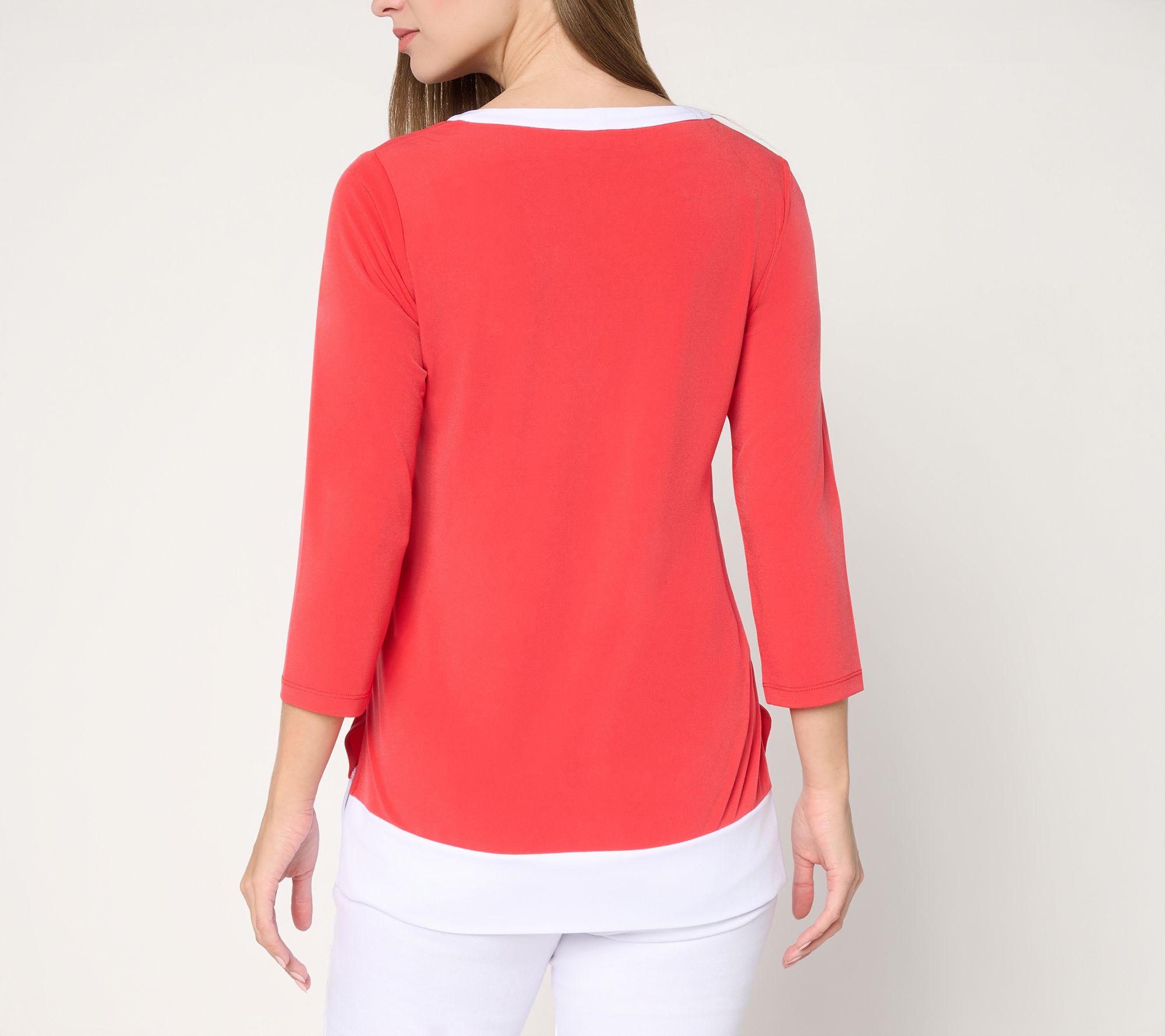 "As Is" Susan Graver Reg Liquid Knit Split Neck Tunic with Trim