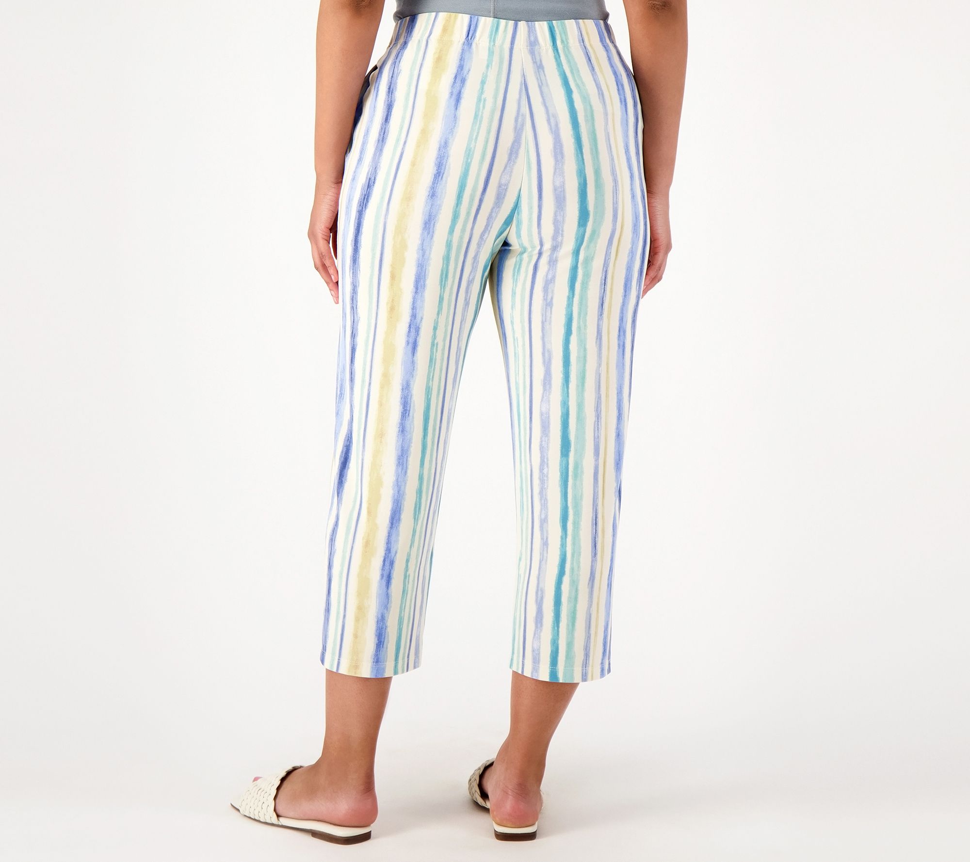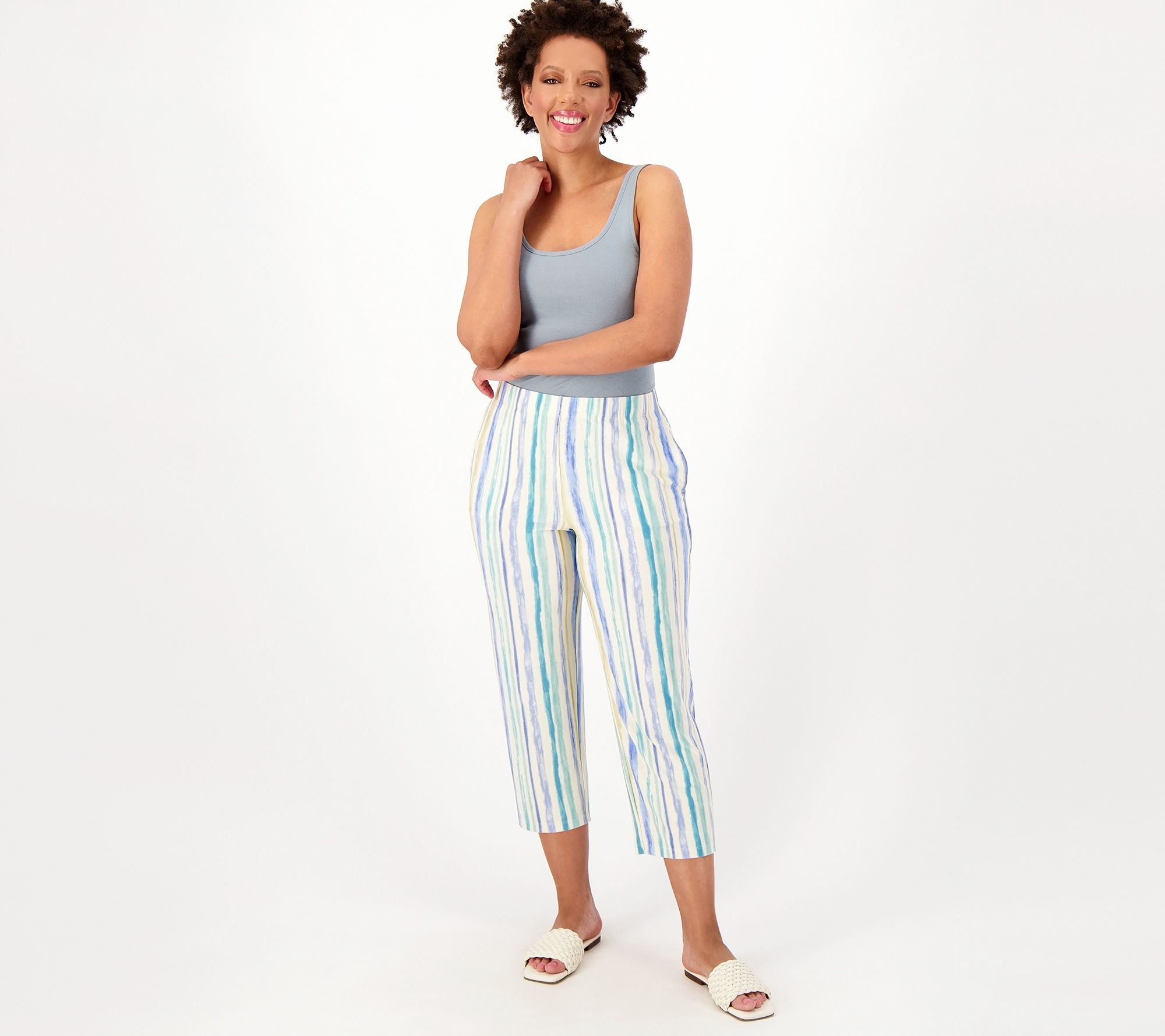 Vertical stripes on these cropped pants elongate the legs for a figure-flattering look. Dress them up with a sleeveless blouse and wedge sandals for an evening out on the town. From Susan Graver.