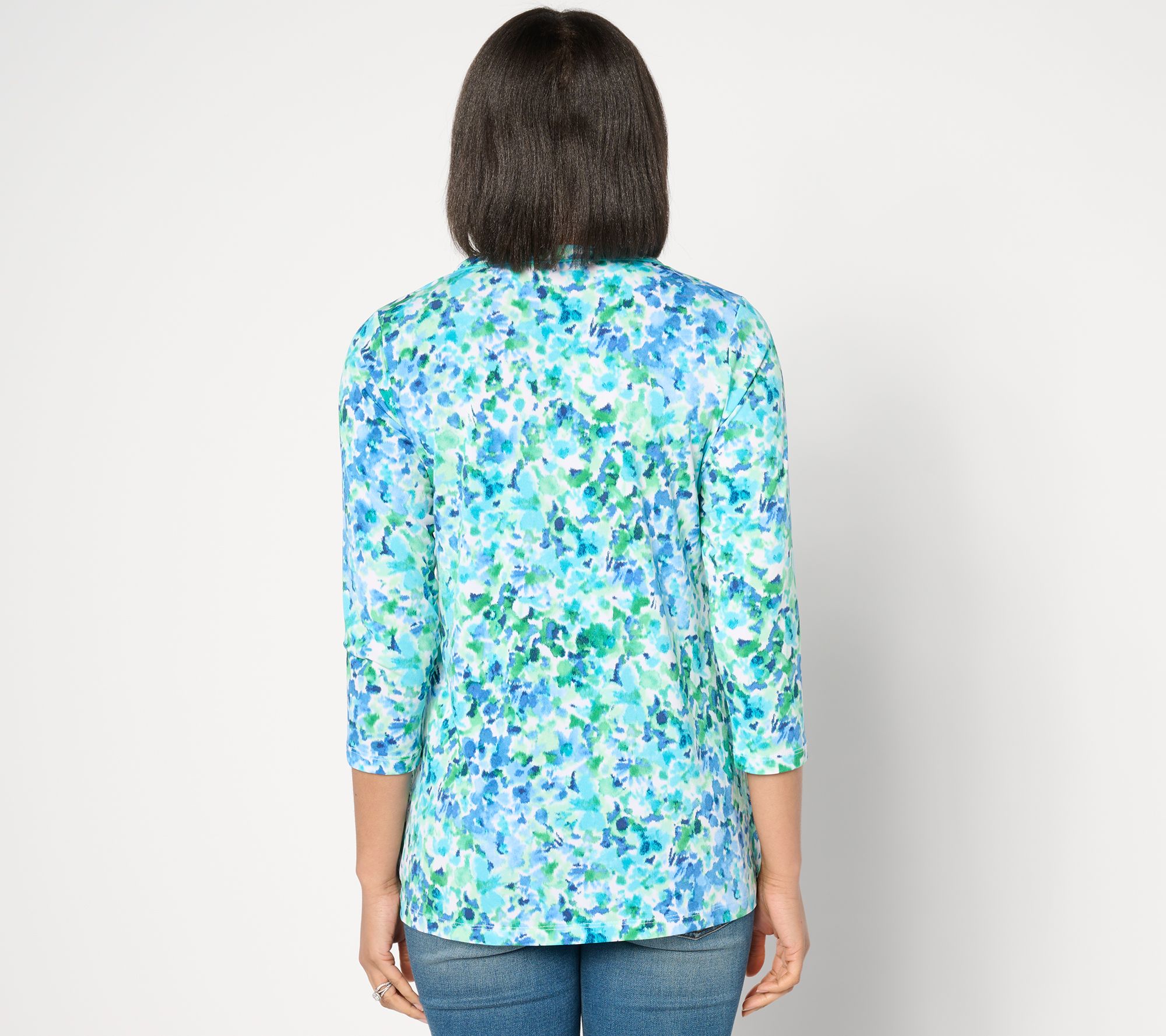 "As Is" Susan Graver Reg Printed Liquid Knit 3/4 Sleeve Tunic