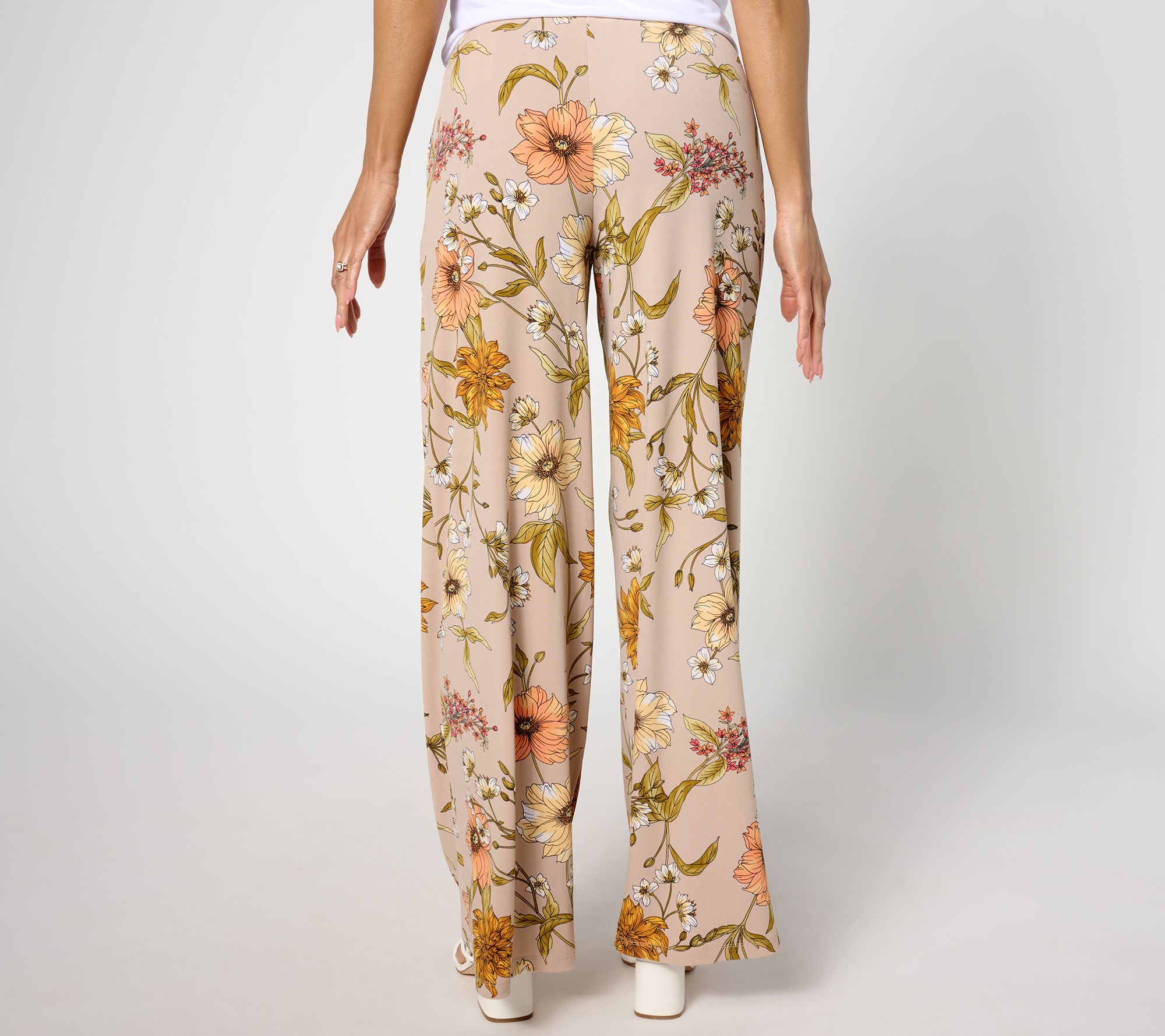 In a playful mood? Pop on these smooth and drapey Liquid Knit® pants that punch up any outfit with their fun floral print and easy wide-leg silhouette. From Susan Graver.