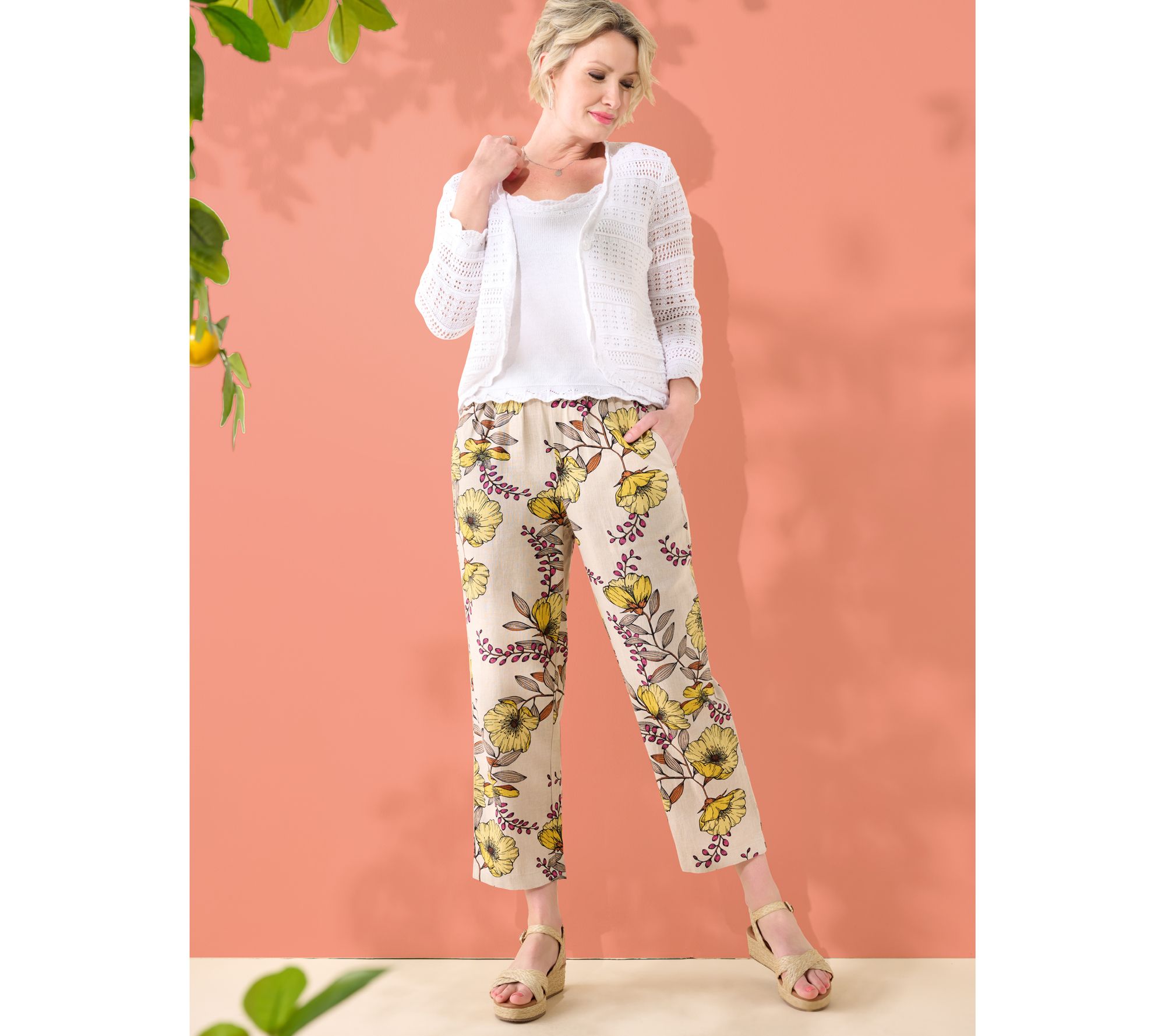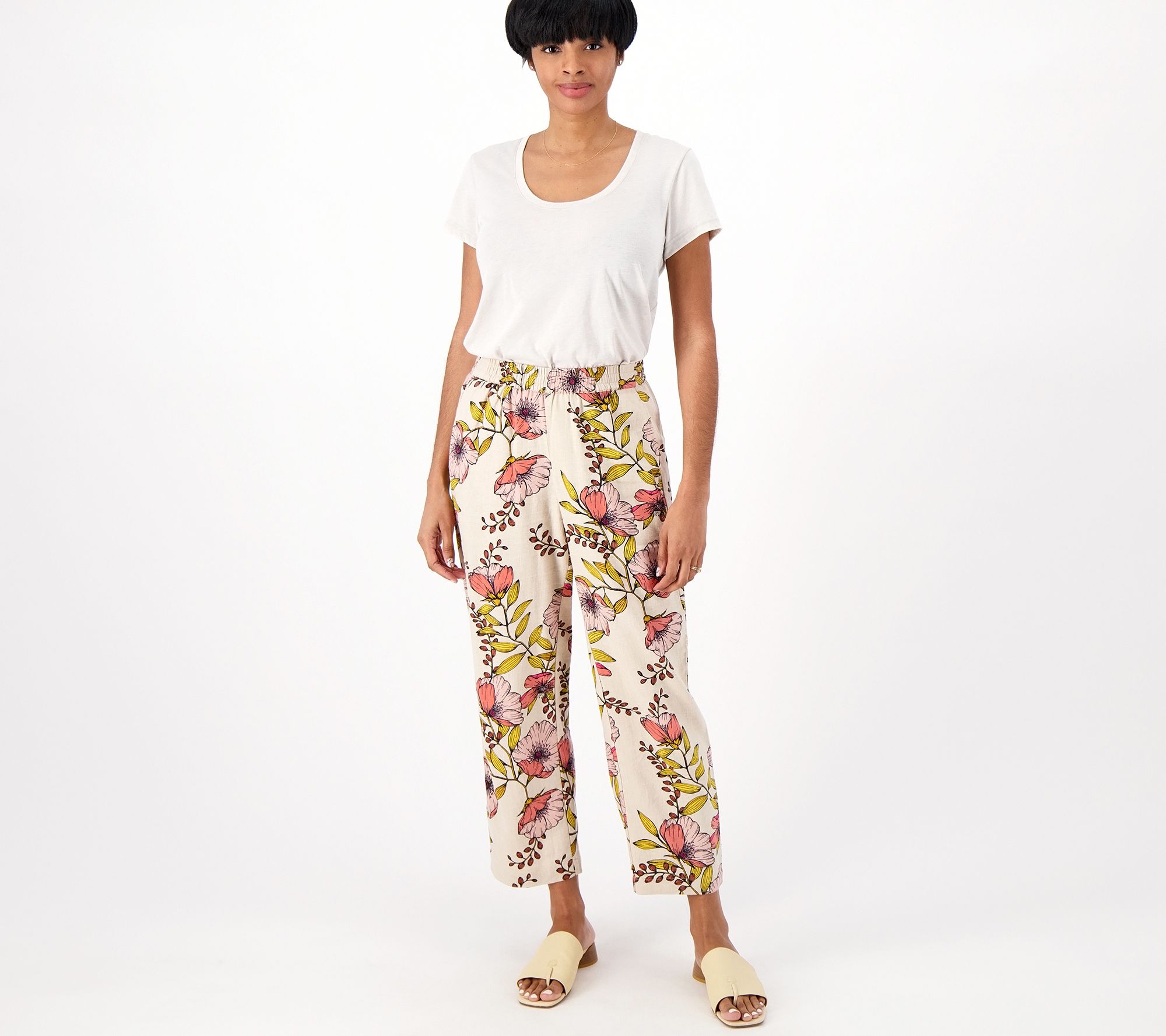A fun alternative to solid slacks, these linen-blend crops feature a stand-out print. From Susan Graver.