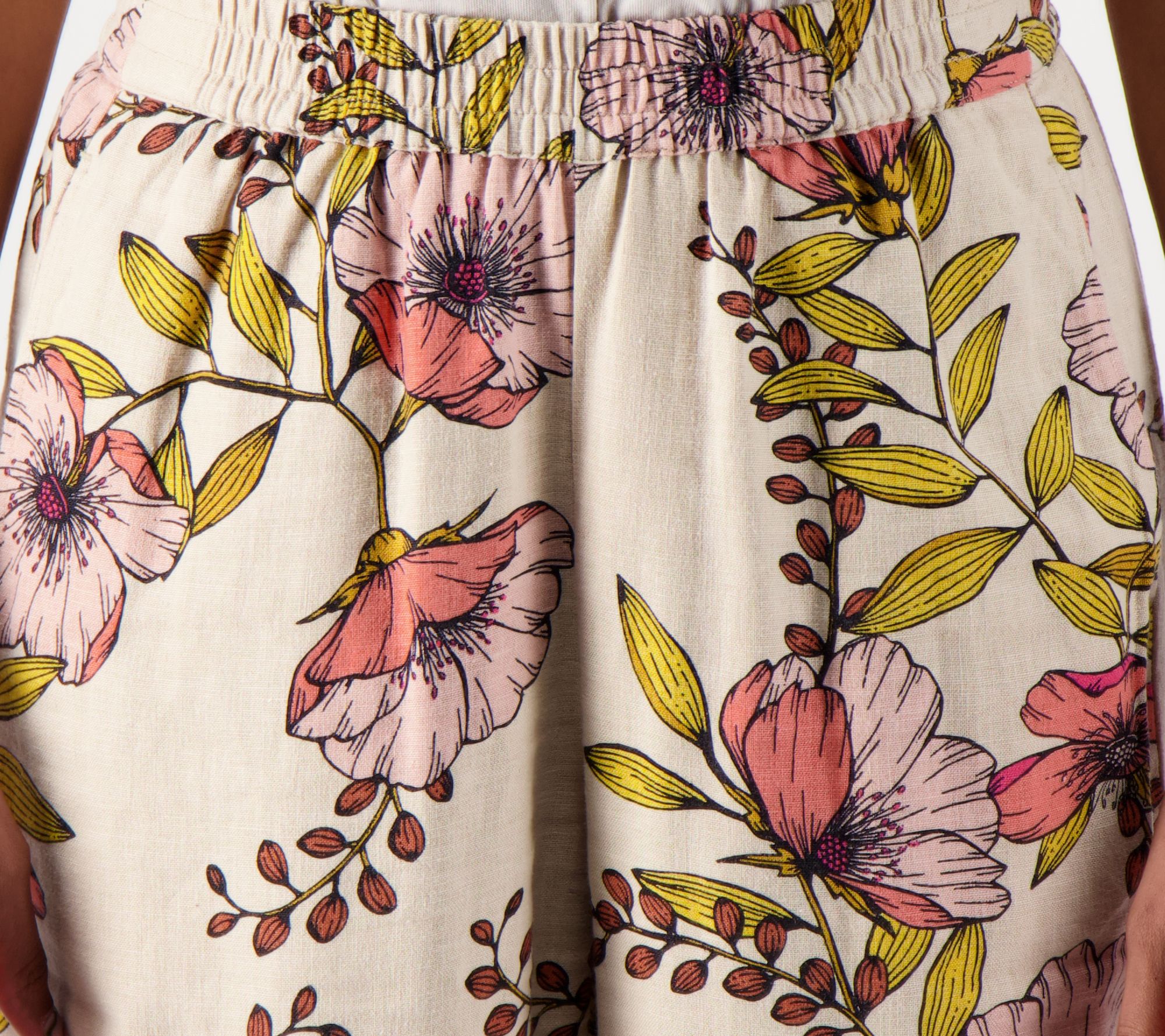 "As Is" Susan Graver Reg PURE Linen Blend Pull On Crop Pants
