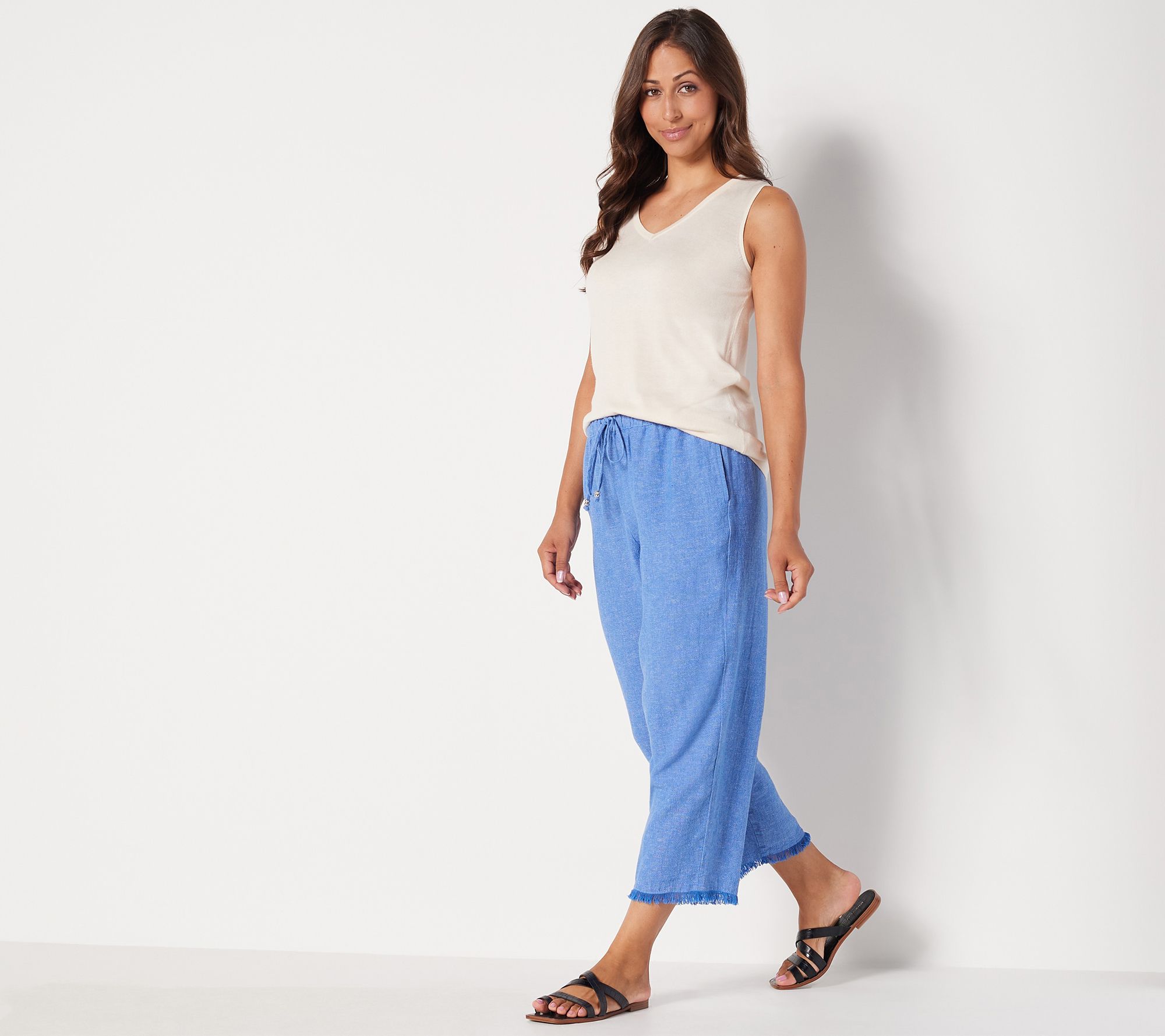 "As Is" Susan Graver Regular Cross-Dyed Linen Blend Crop Pants