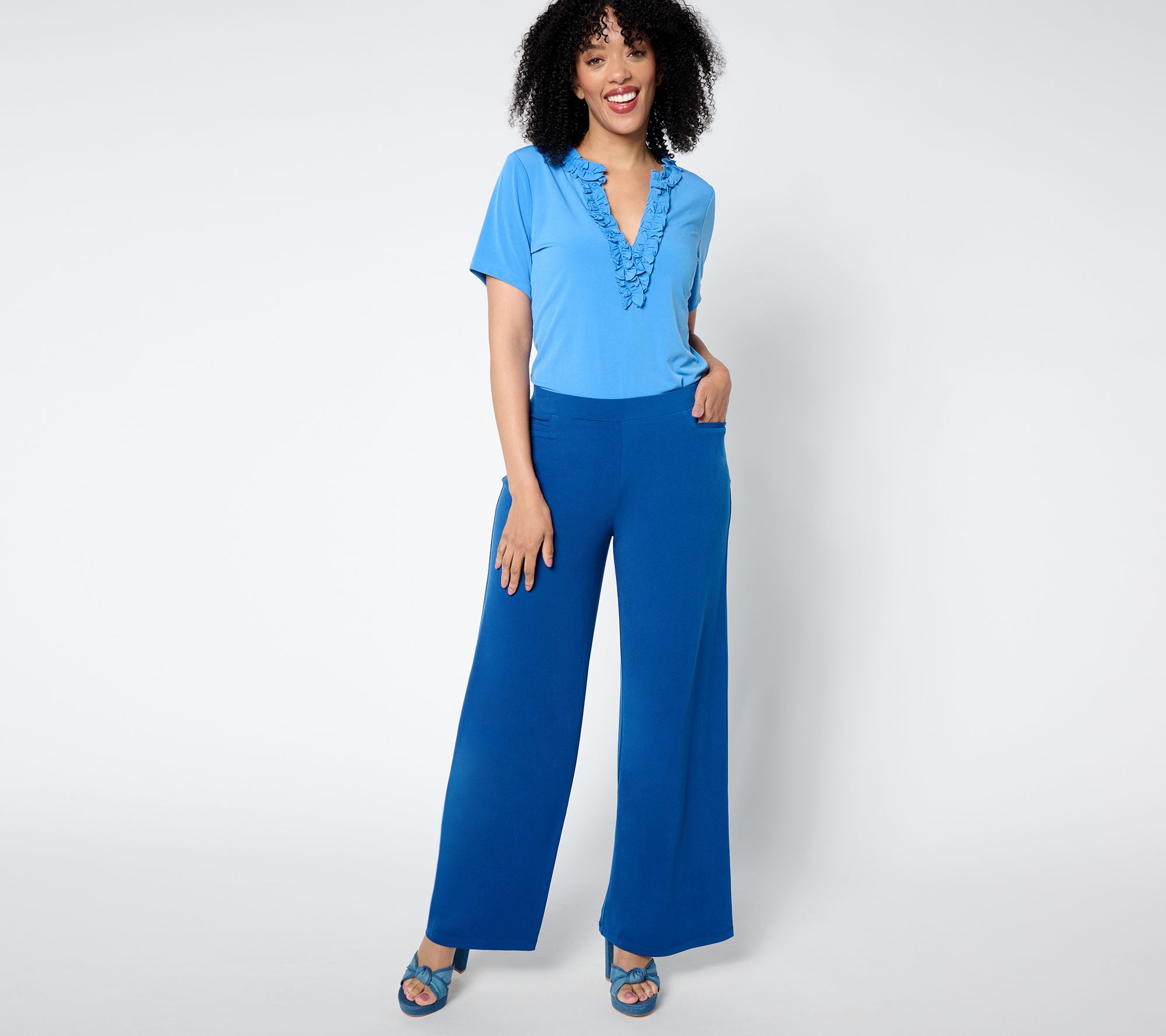 Find your flow in these never-pinching, never-pulling Liquid Knit® pants. A trend-smart wide leg frames your heels and wedges with that legs-for-days look. From Susan Graver.