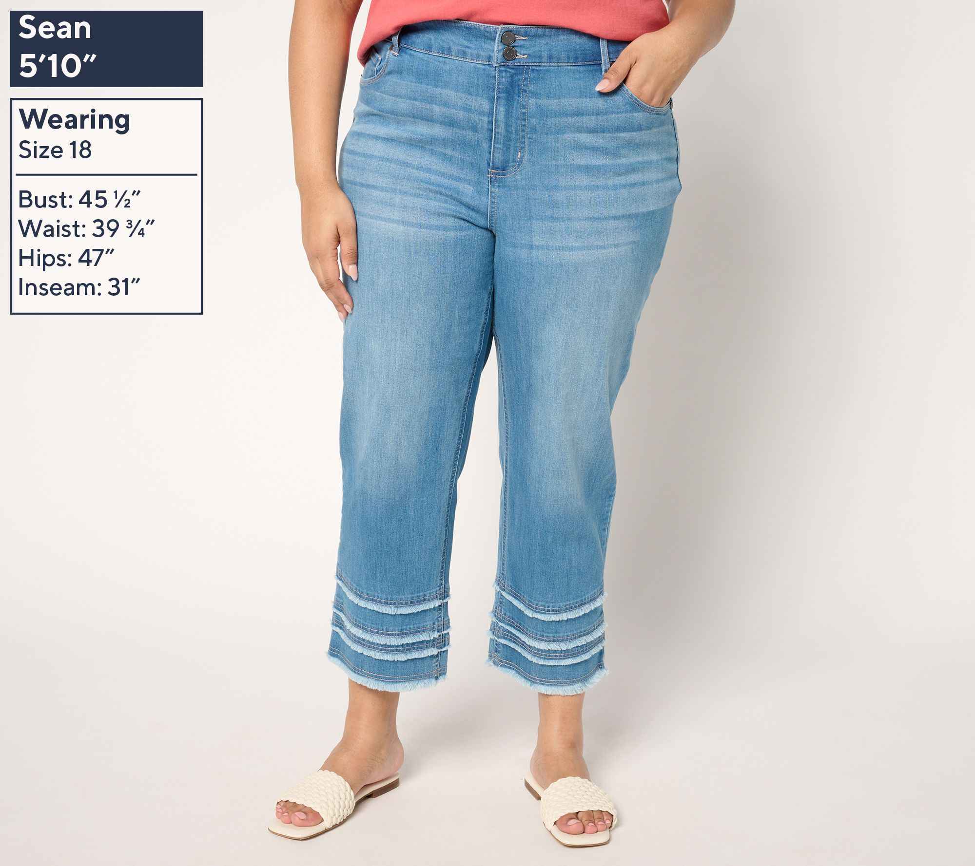 "As Is" Susan Graver Regular Fray Hem Full Leg Jean