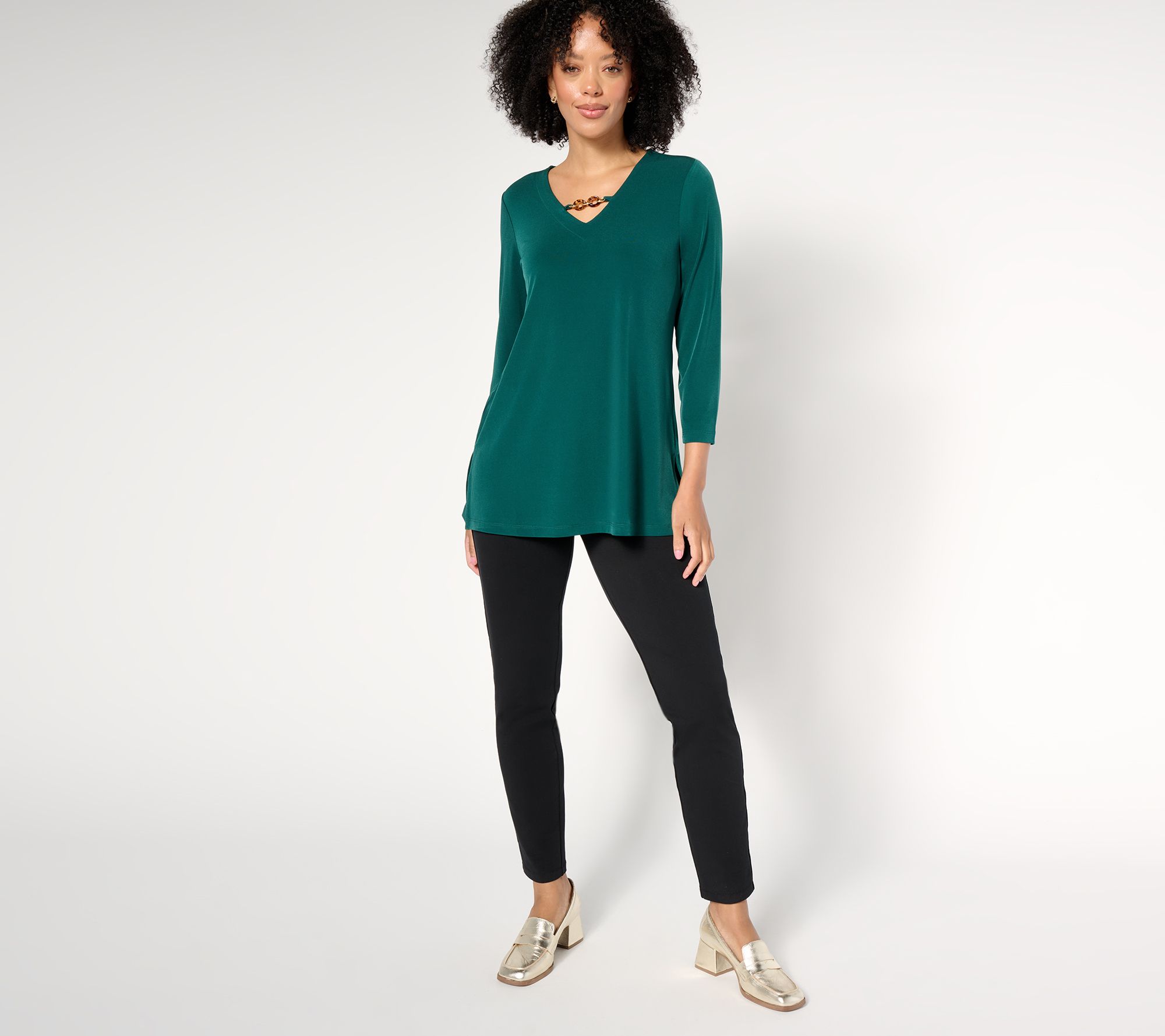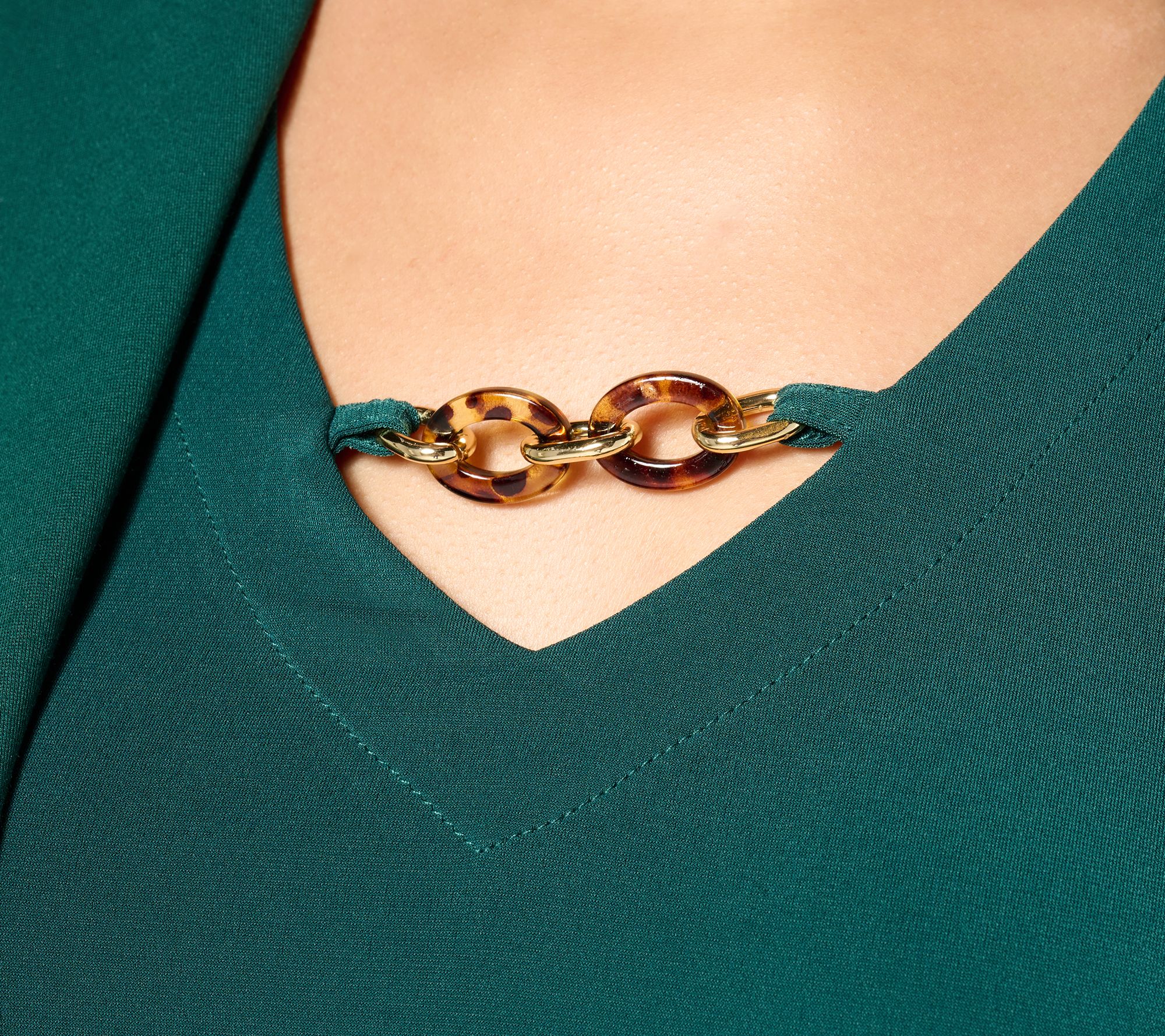 Feel confident and sexy in this A-line tunic. Not only does it hug the body in all the right places, the chain detail highlights your decolletage. From Susan Graver.