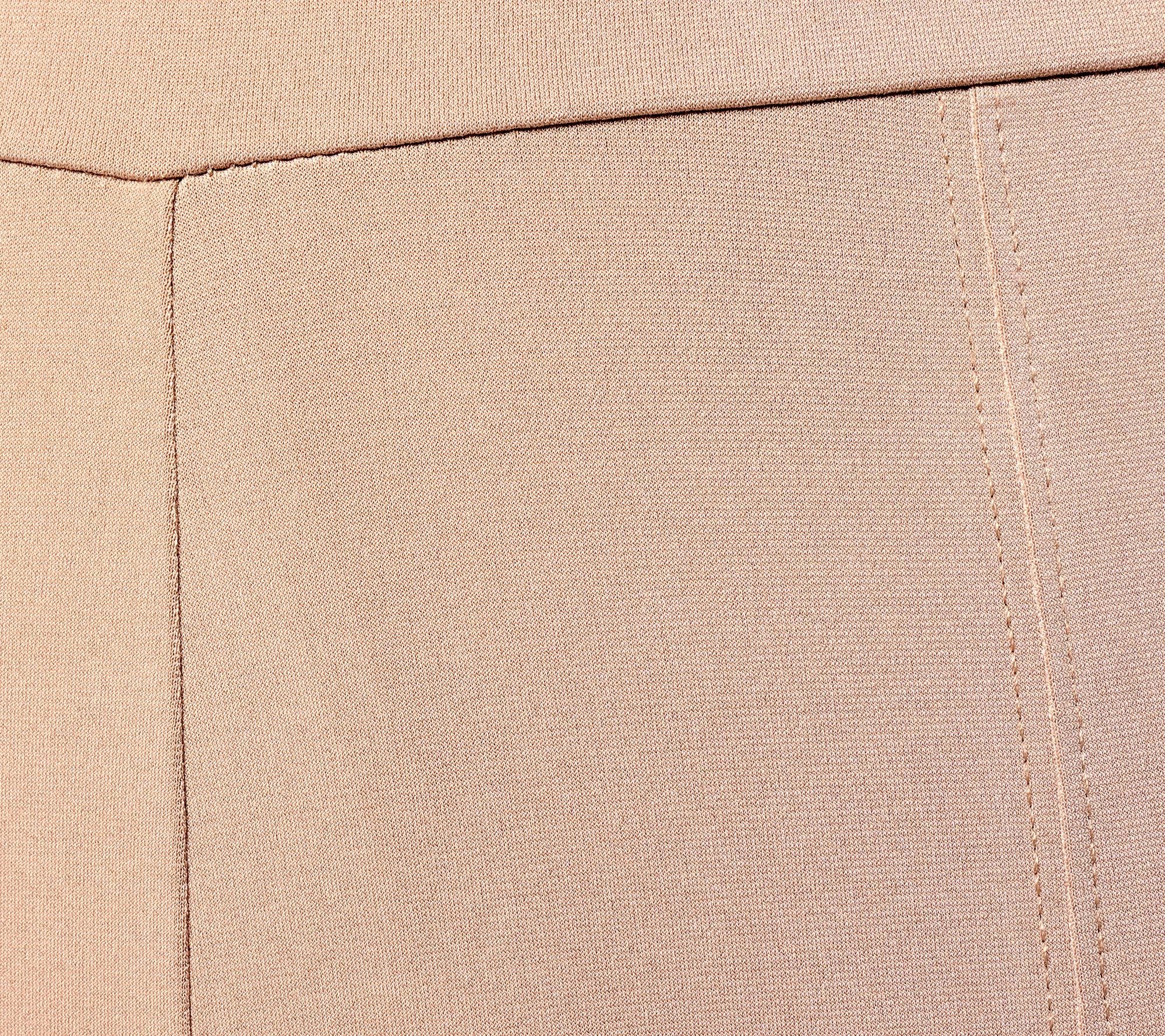 • Features: pull-on style, high-waisted, encased elastic waistband, center front stitched down leg seam