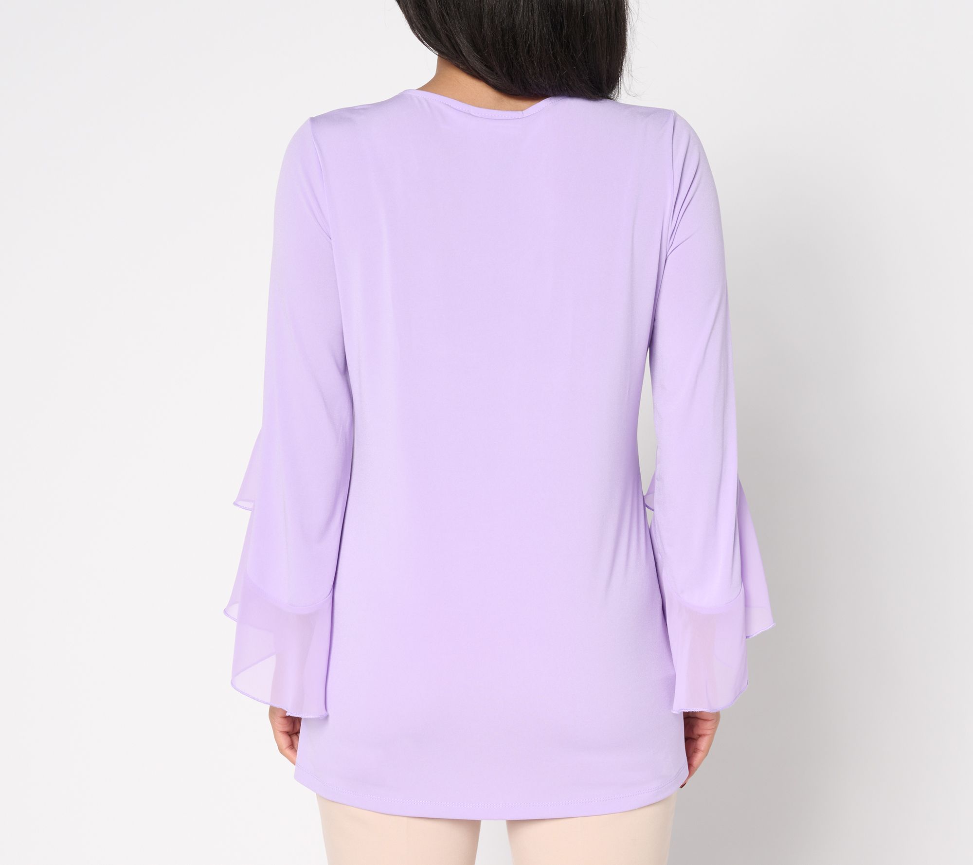 "As Is" Susan Graver Regular Liquid Knit Tunic with Ruffle Sleeves