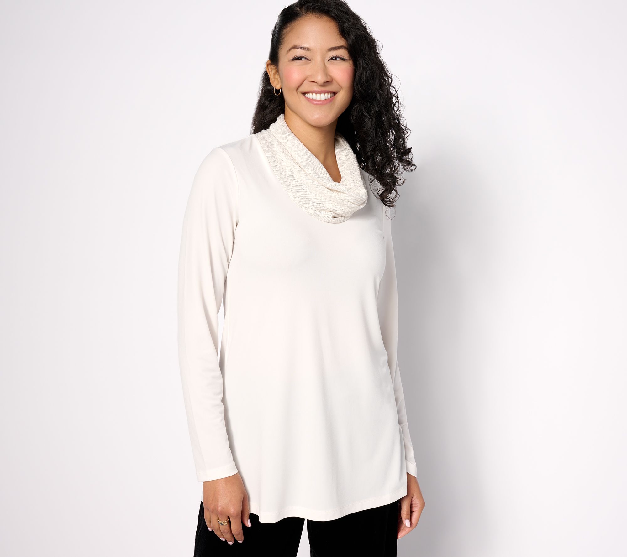 "As Is" Susan Graver Regular Liquid Knit Tunic w/ Sequin Cowl Neck