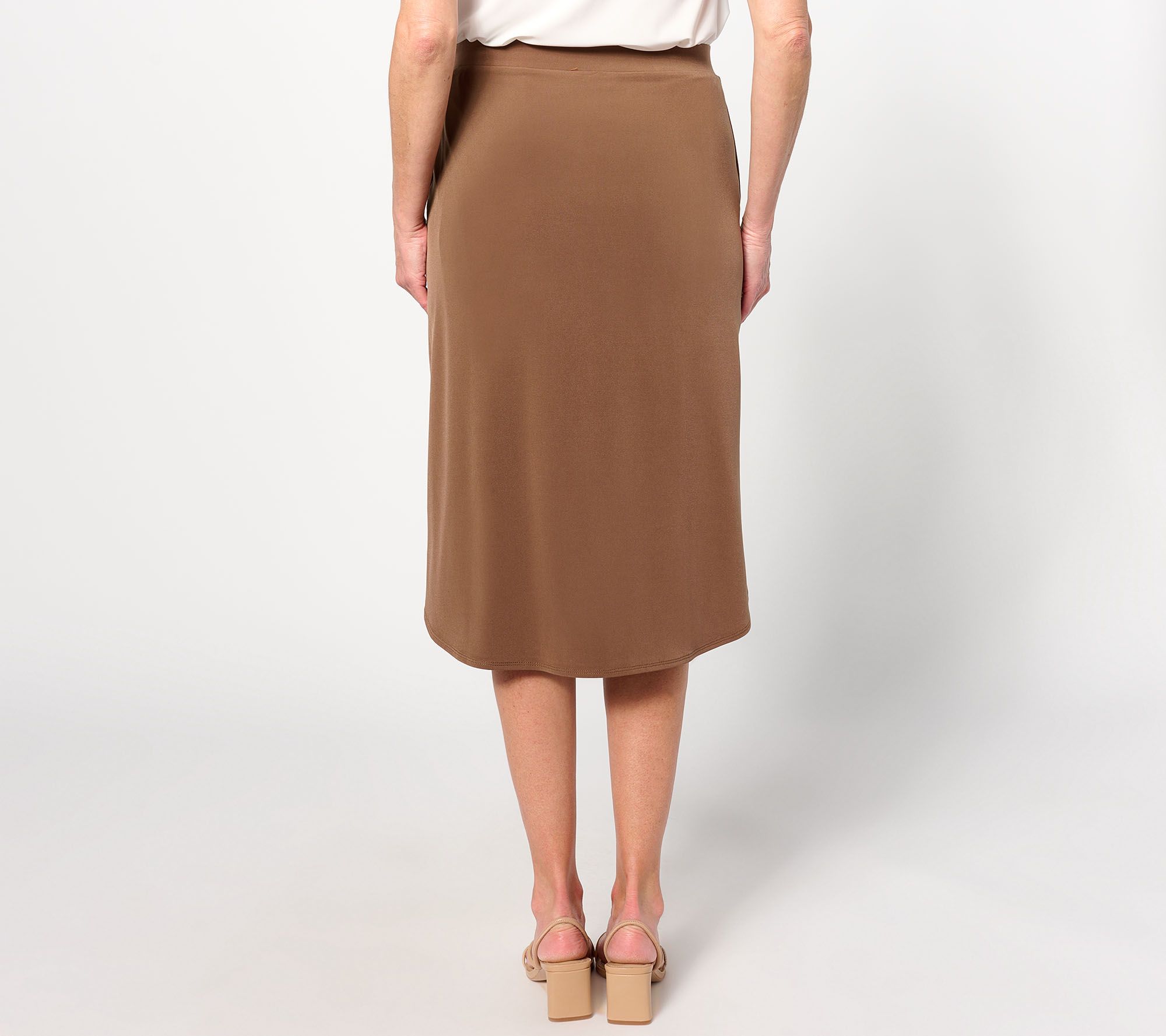 Style this curved-hem skirt with a tee and sneakers for out-and-about weekend plans, or dress it up with a blouse-blazer combo and modern block heel for your workweek. Either way, the easy-care Liquid Knit® style is as minimal effort/max polish as it gets. From Susan Graver.