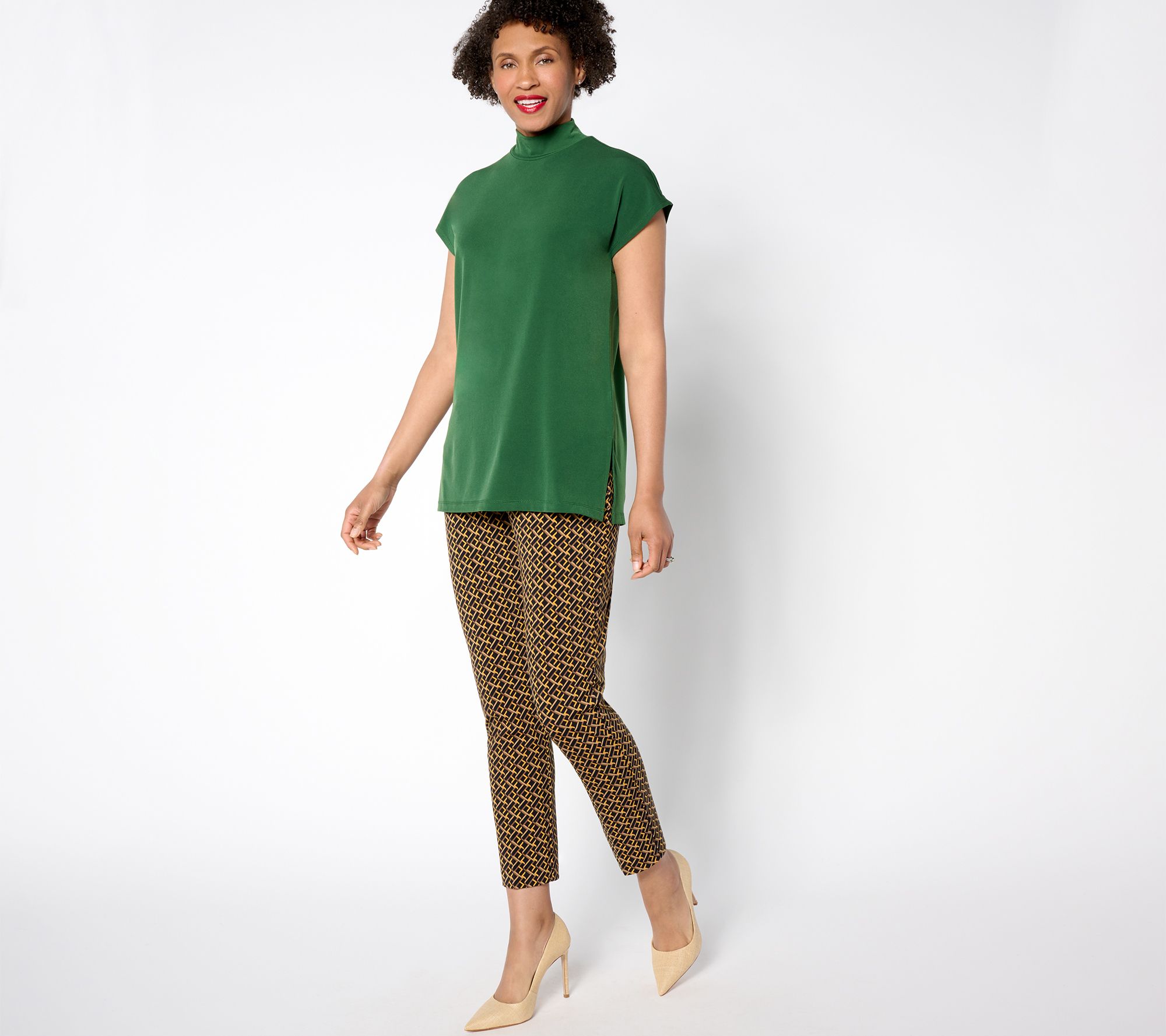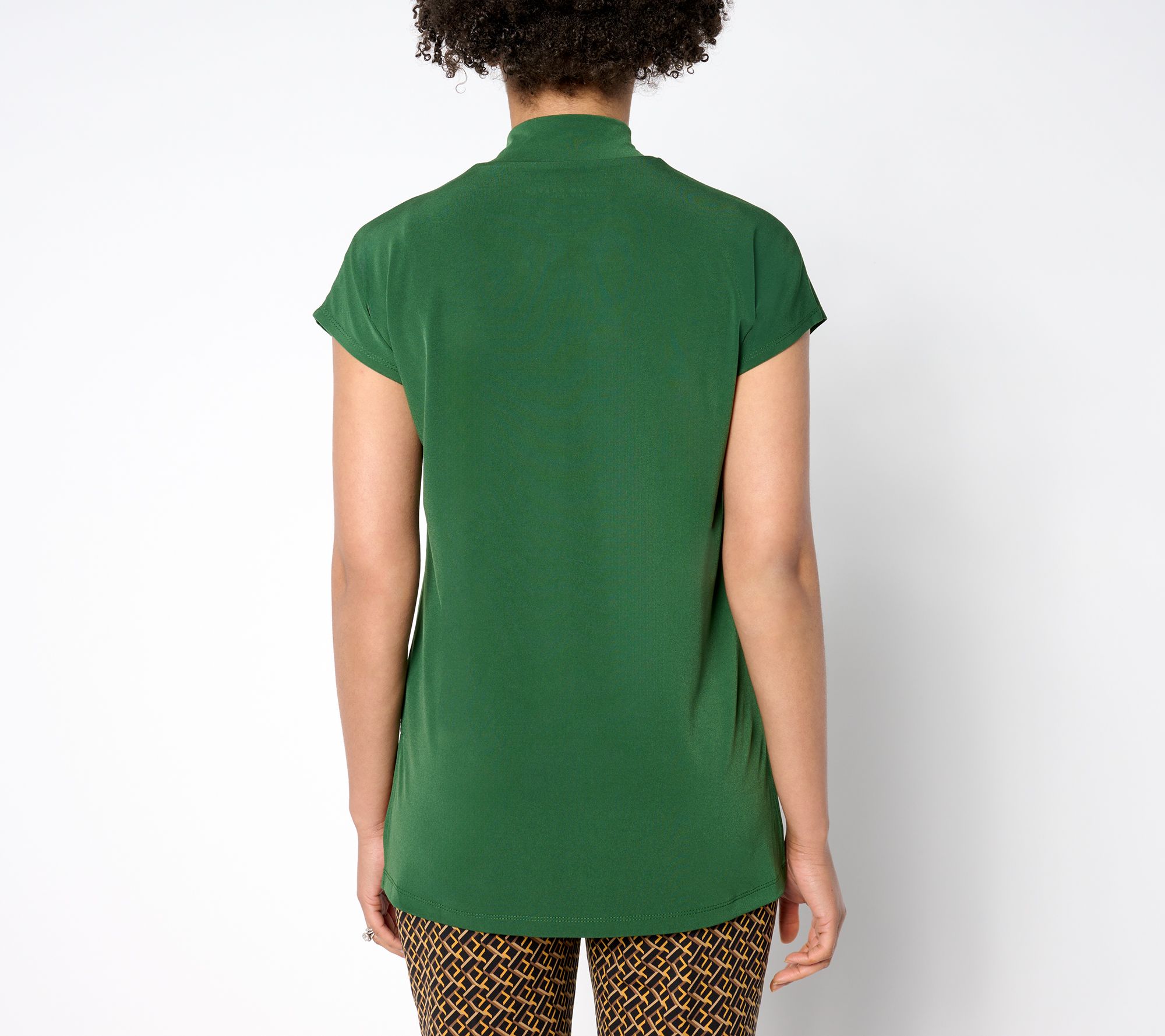 Made of luxe Liquid Knit® fabric, this simple-yet-chic mock neck top gracefully drapes over the body and flatters your frame. Wear this wardrobe essential with your favorite trousers, jeans, and leggings and complete your outfit with your most fabulous footwear. From Susan Graver.