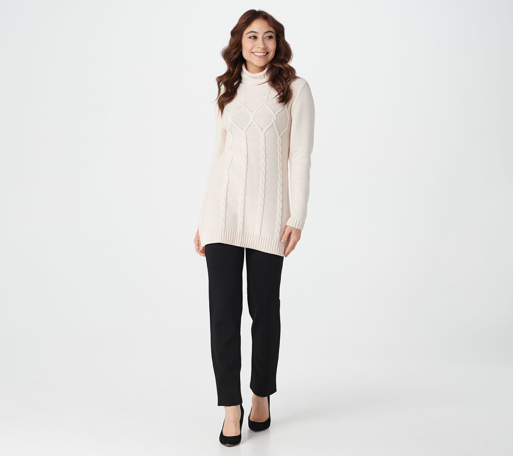 Jeans won't cut it. Skirt? No, thank you. These effortless ponte knit pants hit all the right notes with their vertical seam detail and comfortable flat elastic waistband. Say hello to your new favorite wardrobe staple. From Susan Graver.